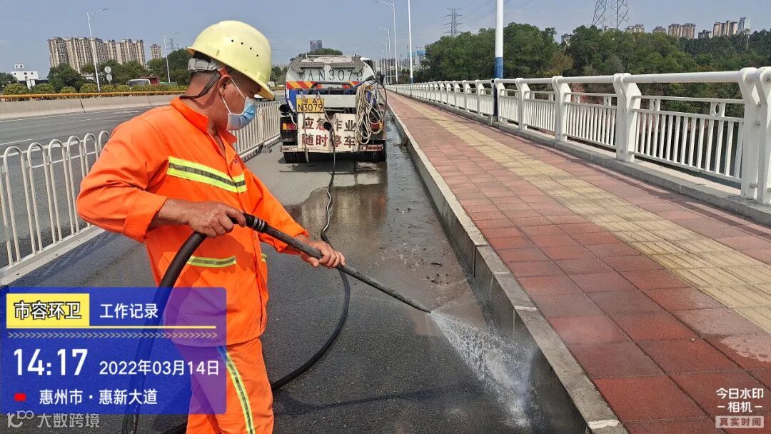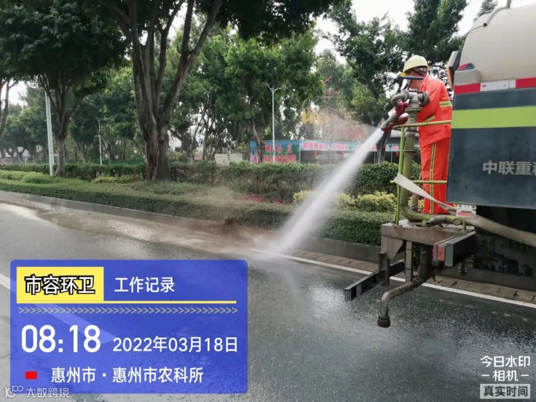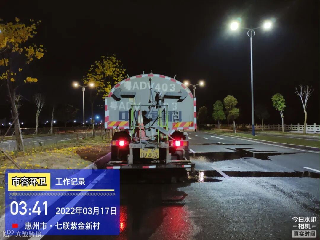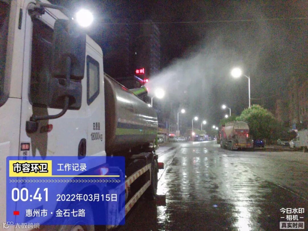 白天夜间常态化冲洗清扫辖区各路段及沿线喷雾洒水降尘作业