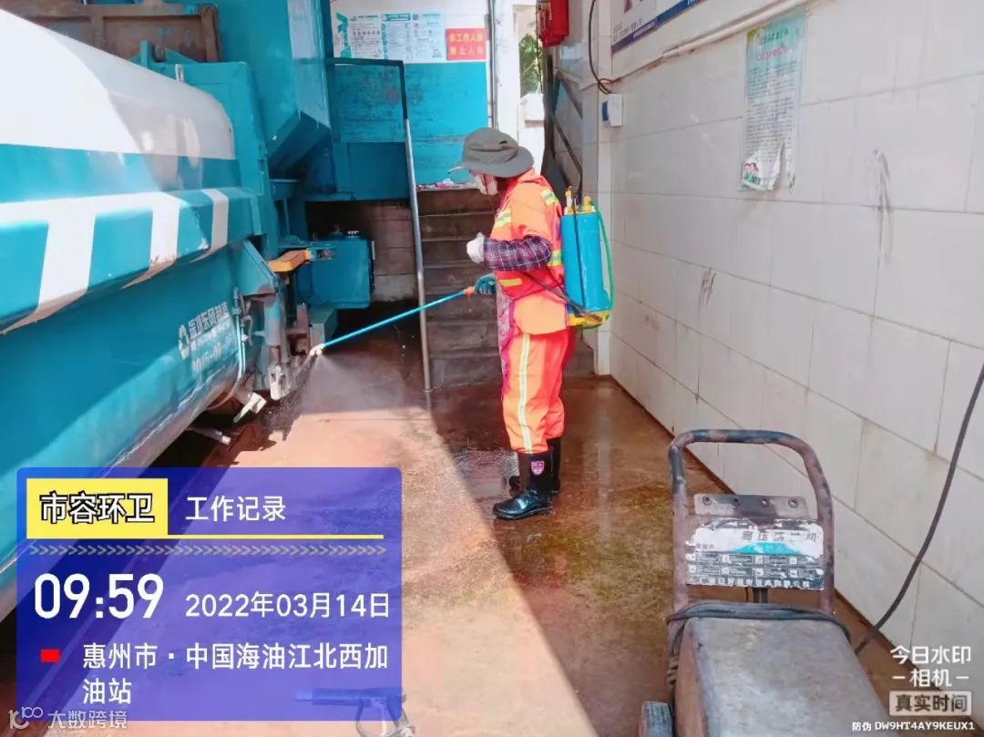 中转站/公厕日常作业及维护,每日两次以上高压冲洗并喷雾消毒站内外地面及箱体