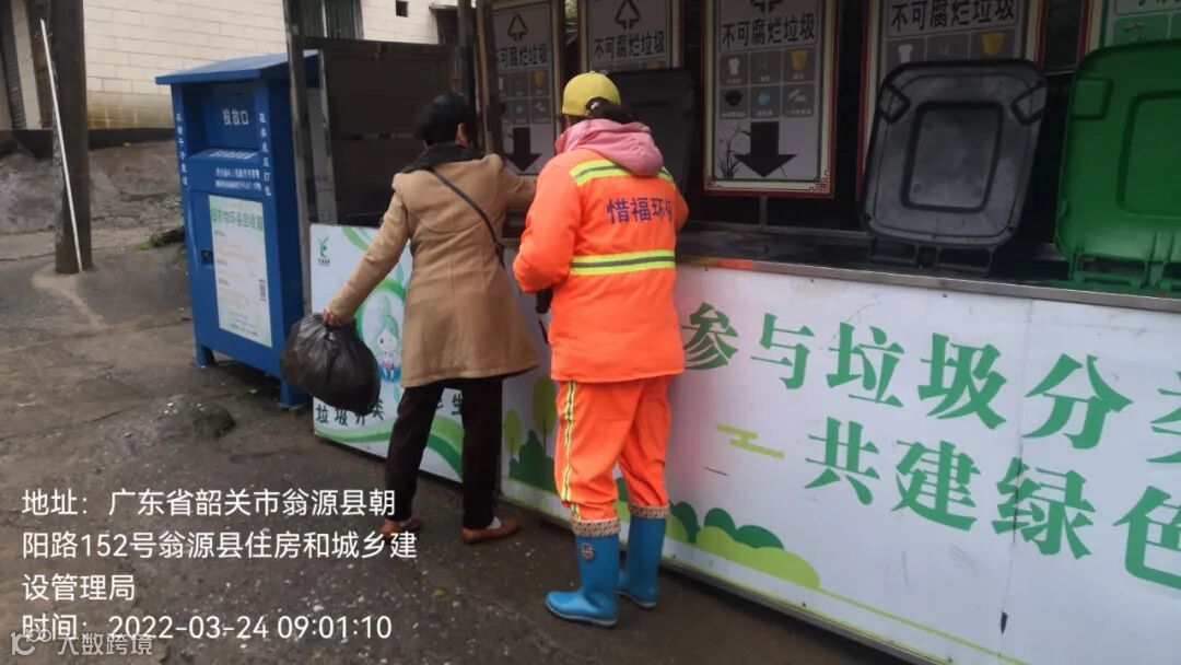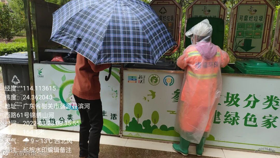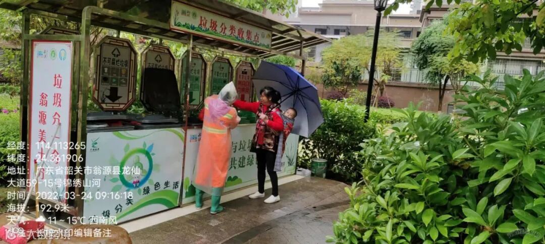2、垃圾分类人员在各小区守点宣传。