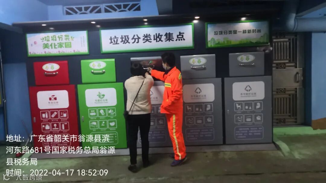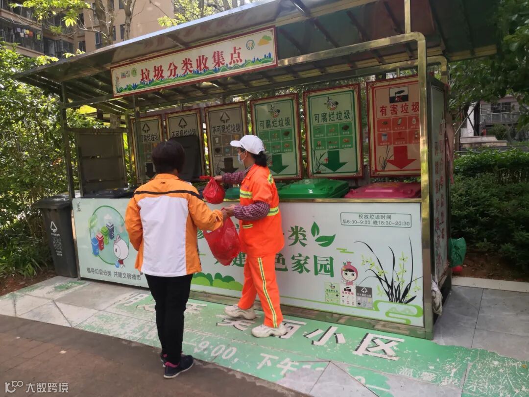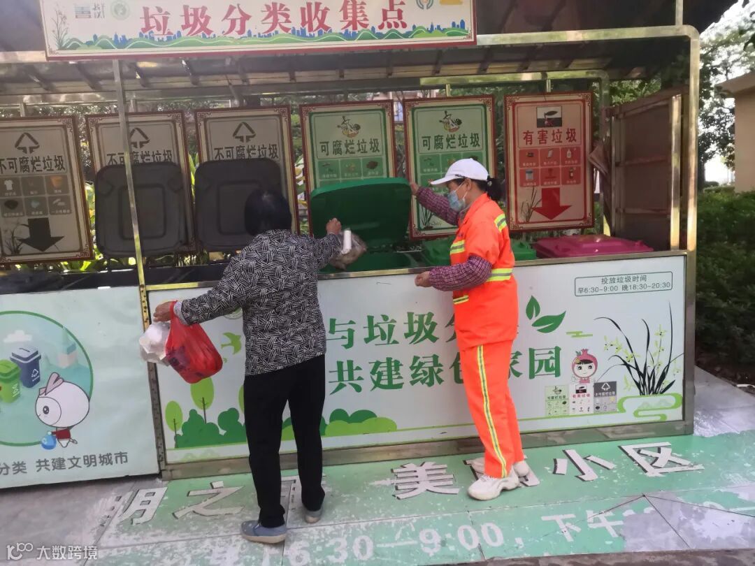 5、 劝导人员在各小区垃圾收集点进行垃圾分类劝导。