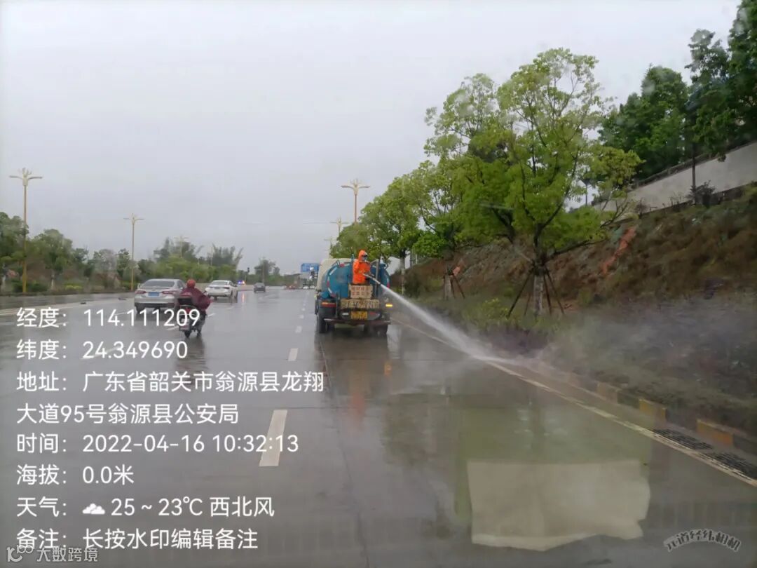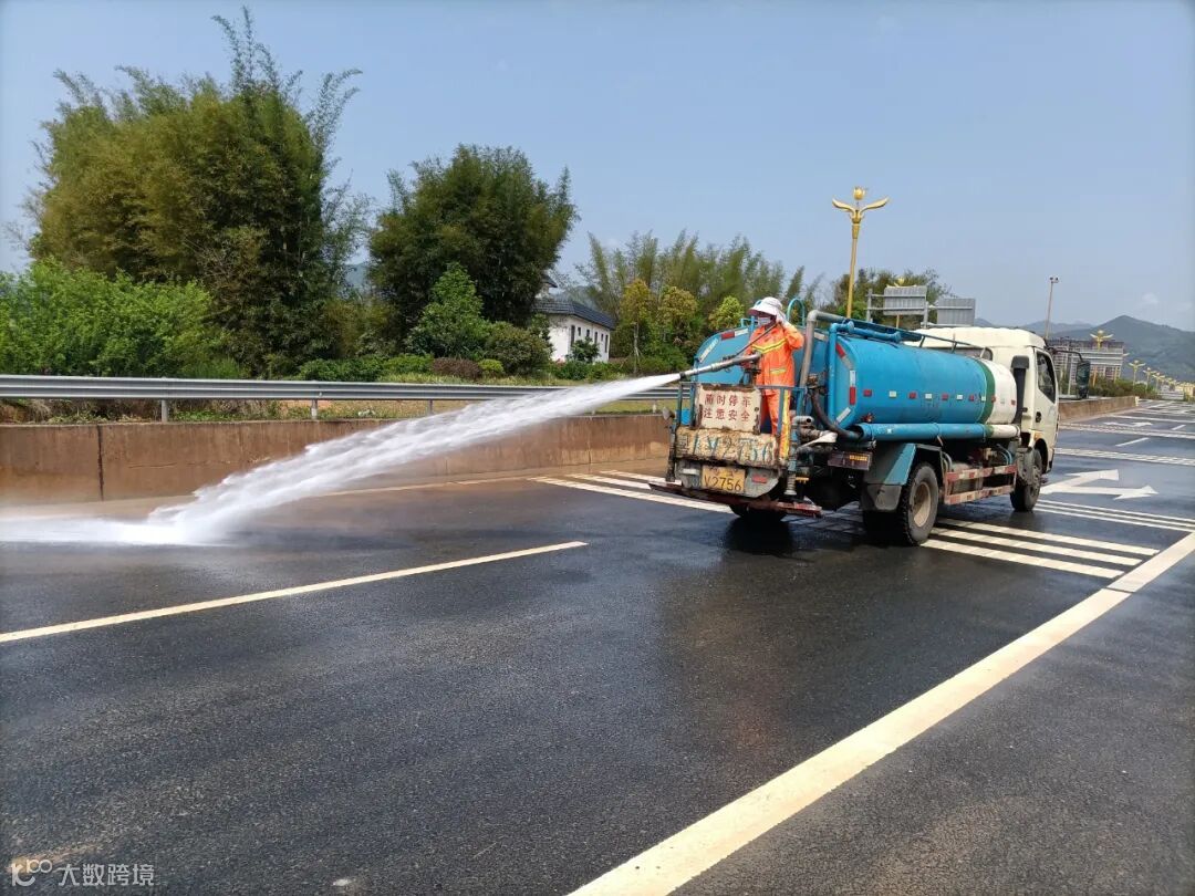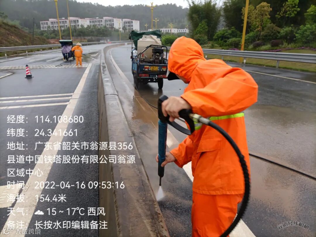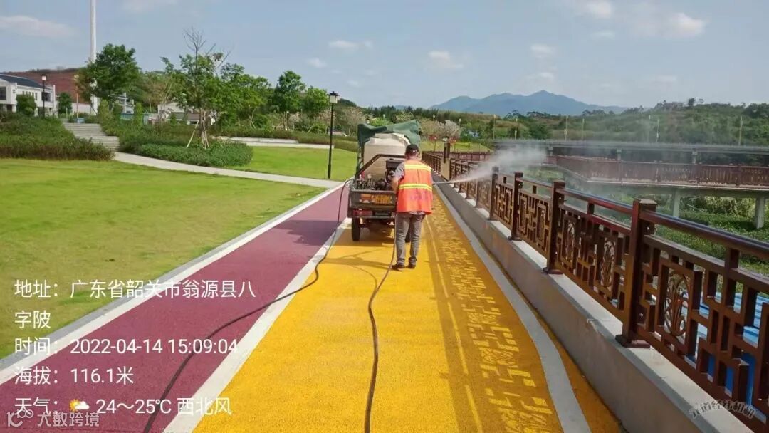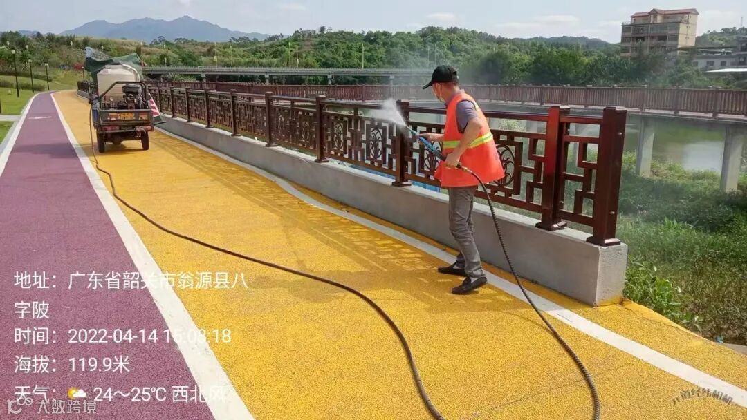4、 为迎接18号省领导到来,全力配合县里多次反复冲洗西区各路段,西出口,建设一路至龙泰段,翁冮湿地公园左右两边绿道及护拦等冲洗。