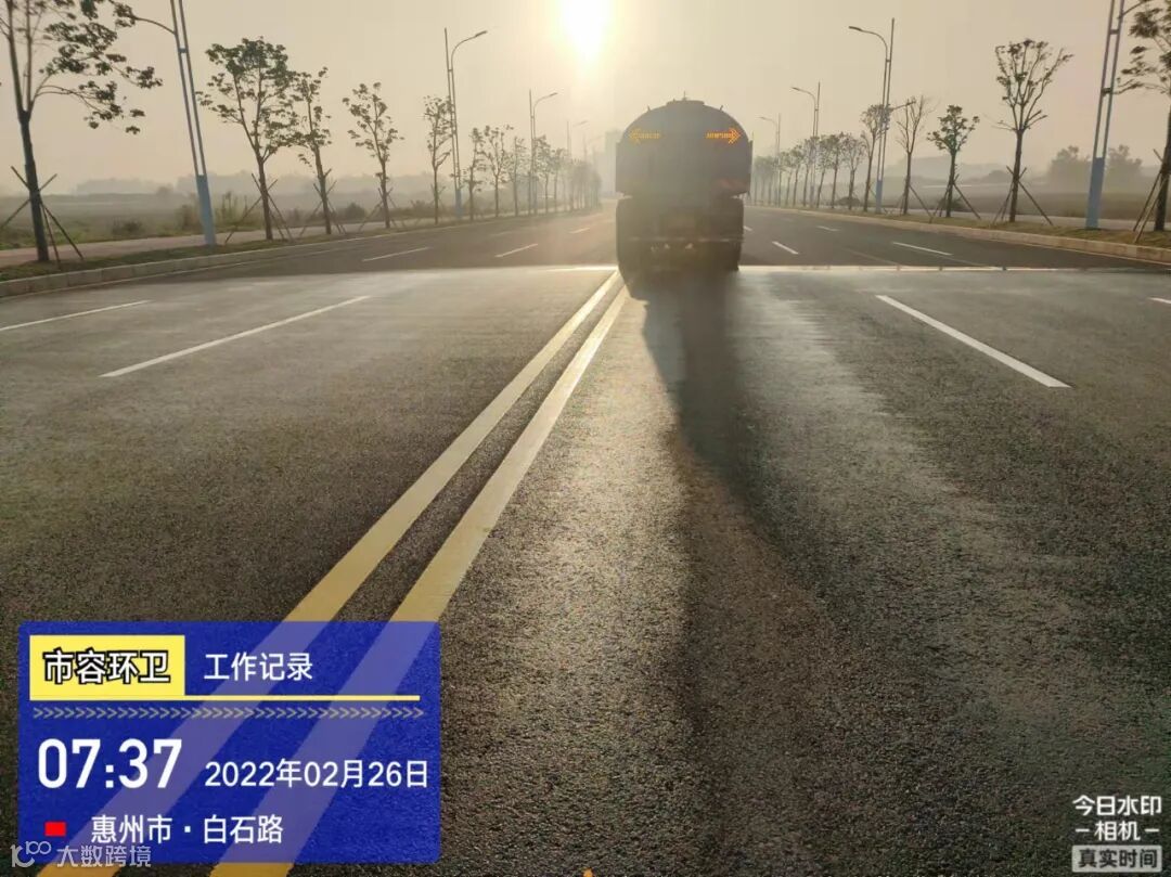 白天夜间常态化冲洗清扫辖区各路段及沿线喷雾洒水降尘作业