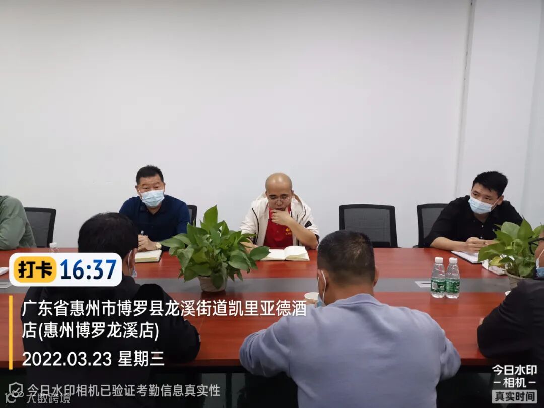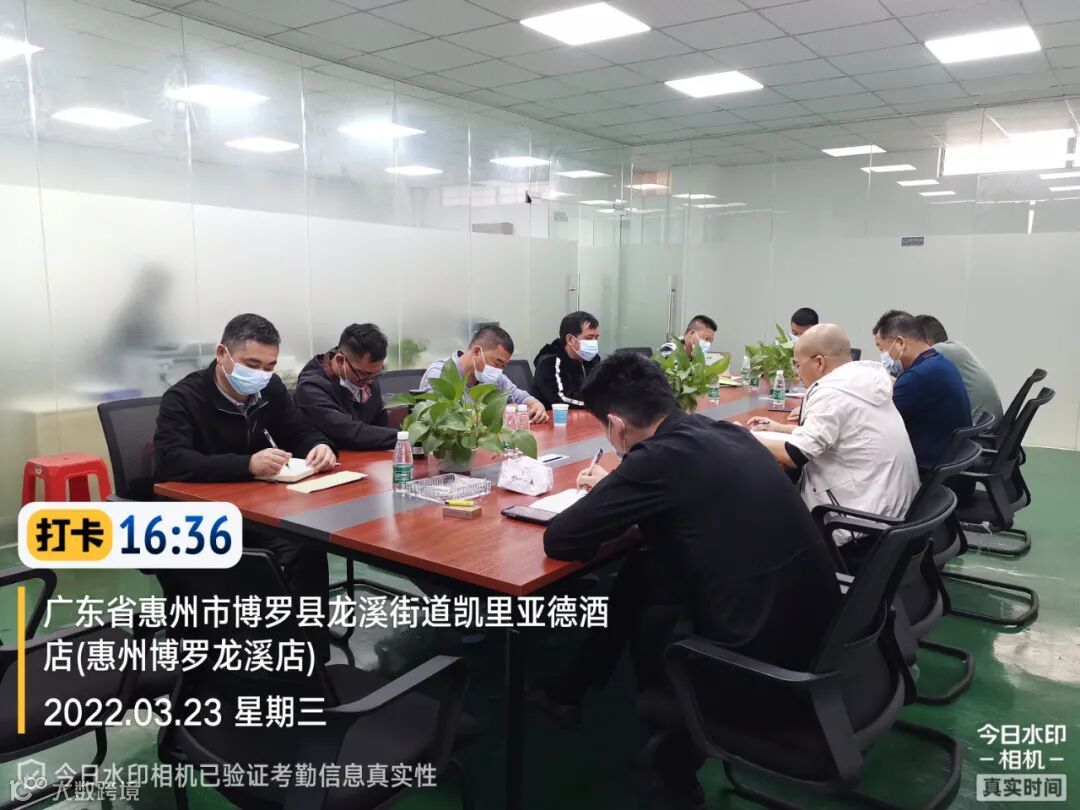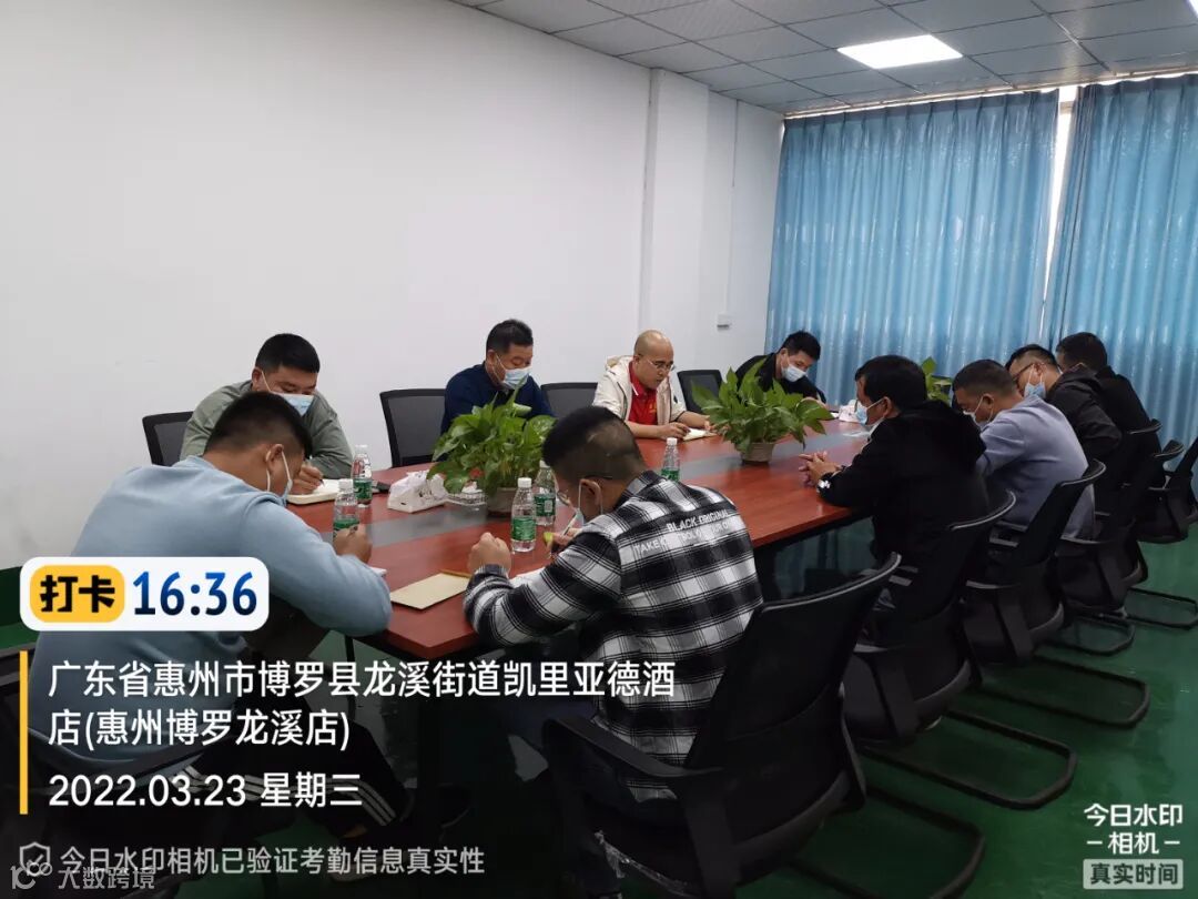 (县市容环境卫生事务中心工作组刘股、龙溪项目管理人员召开周例会,强调疫情防控和安全生产,刘股作工作指示。)