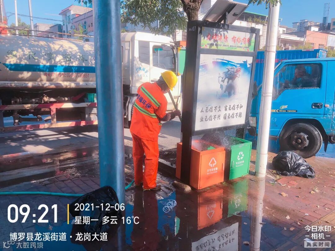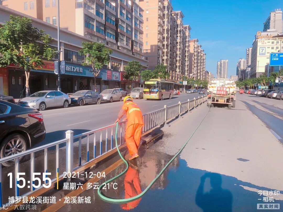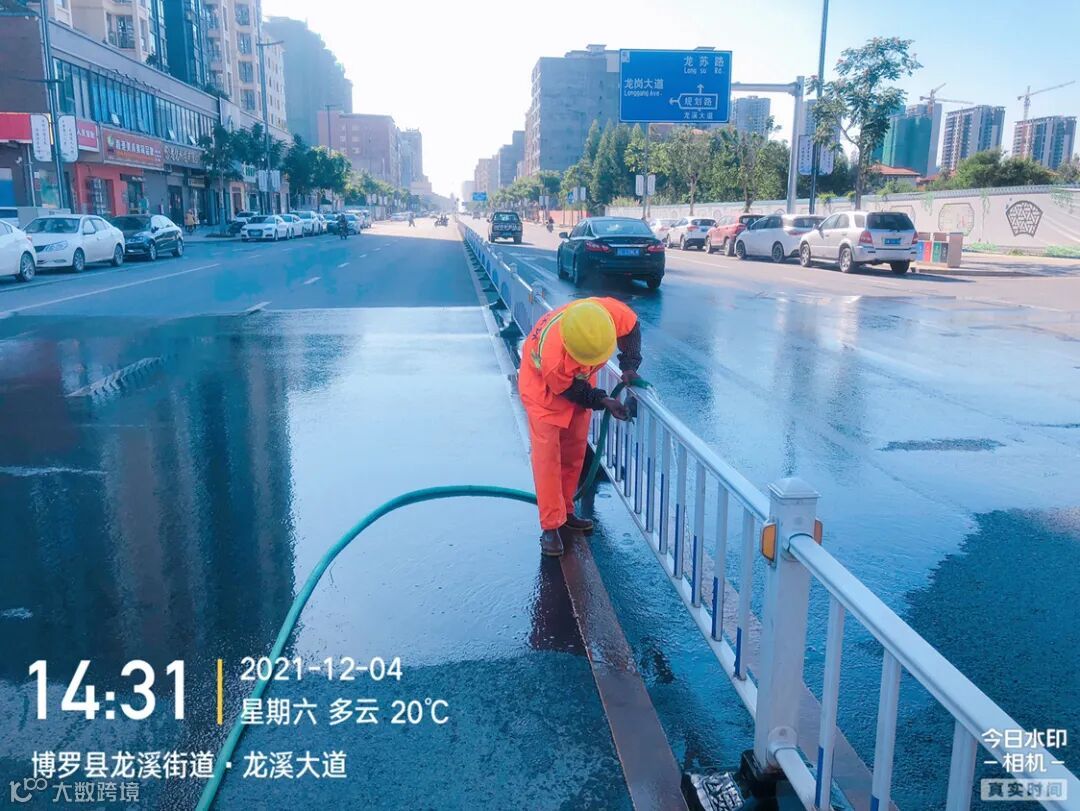 2、加强冲洗街道中心区主干道、人行道、桶点、果皮箱及护栏、广告牌等公共设施。