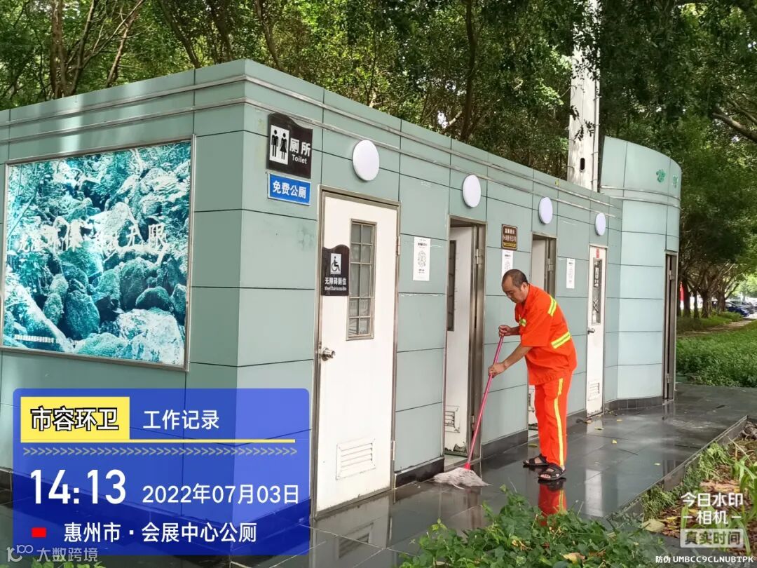中转站/公厕日常作业及维护,每日两次以上高压冲洗并喷雾消毒站内外地面及箱体