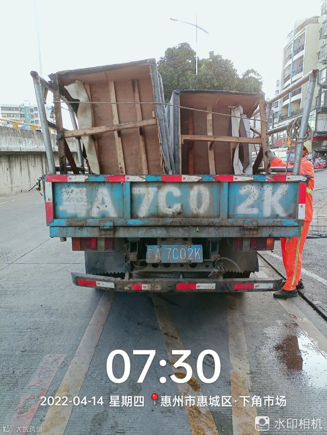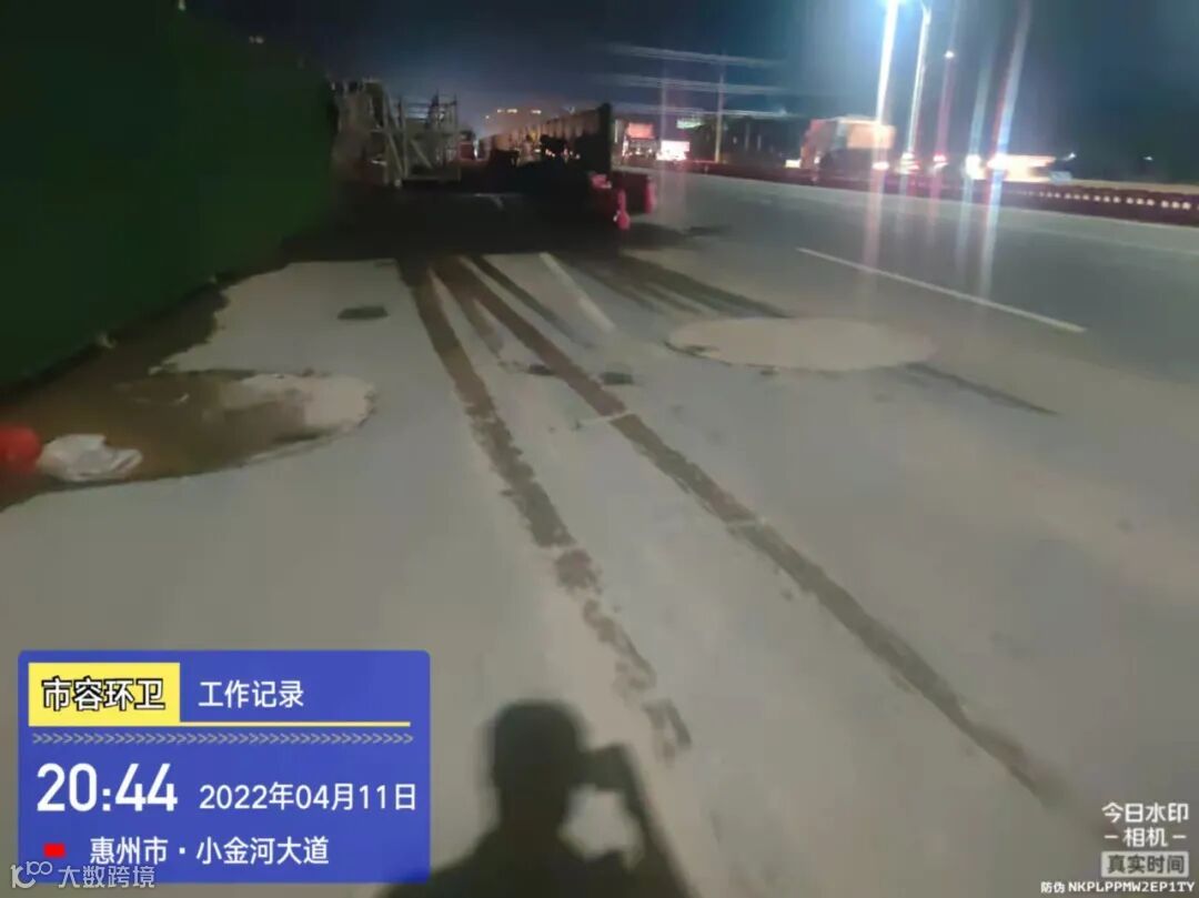 4、劝导小组白天夜间对工地泥头车污染进行监督、取证及上报,及时清洗污染路段;