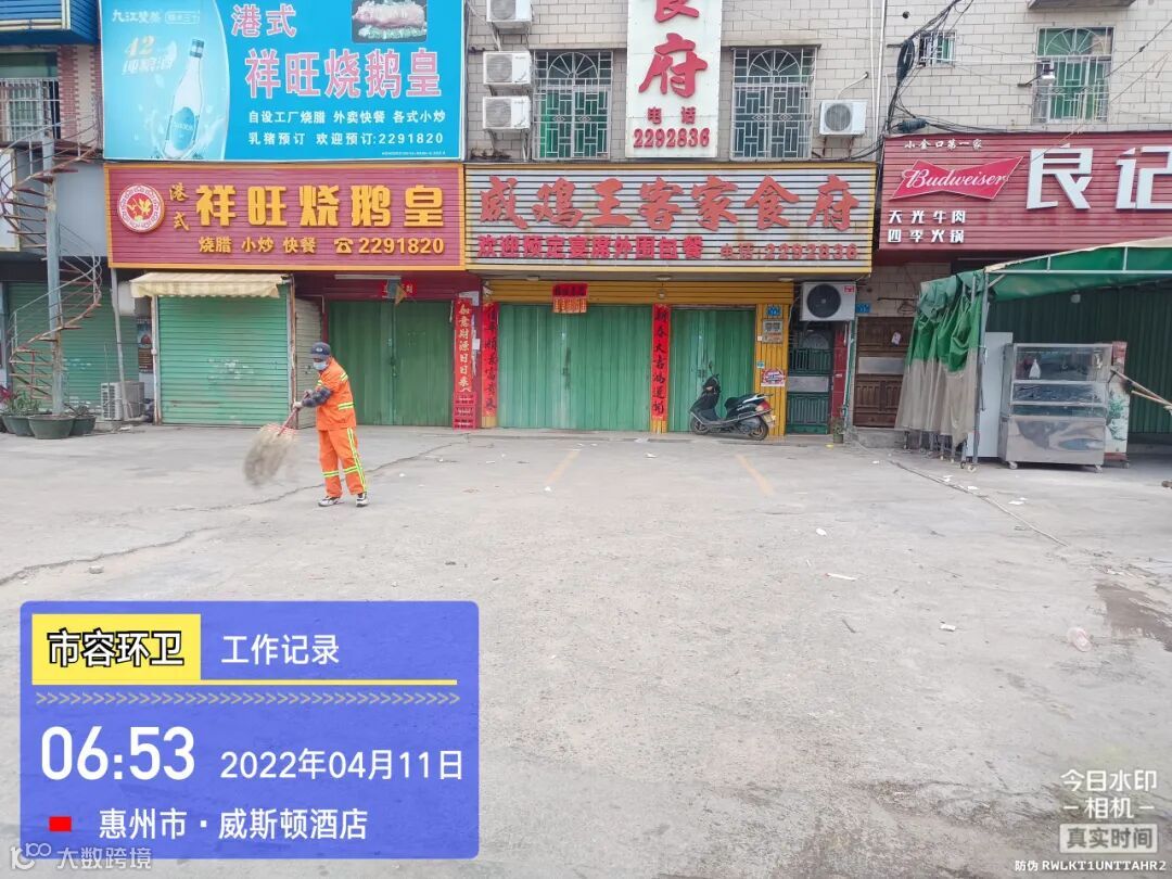 1、配合疫情防控,督促员工作业期间佩戴好口罩注意防范,加强辖区消杀作业;