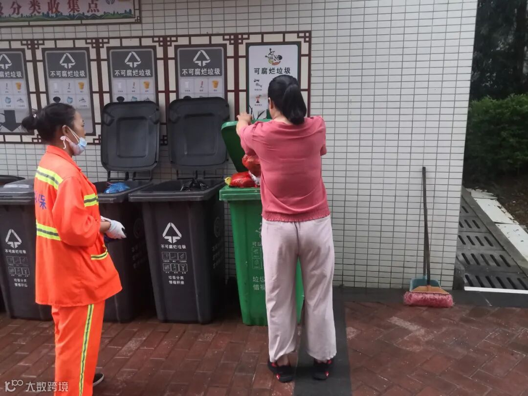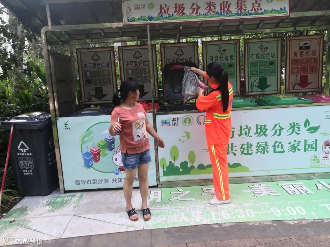1、分类劝导人员到龙湖(广客隆超市)和锦绣广场(米吃羊餐厅)沟通干湿分离及收运。