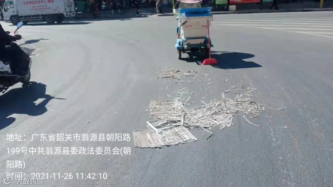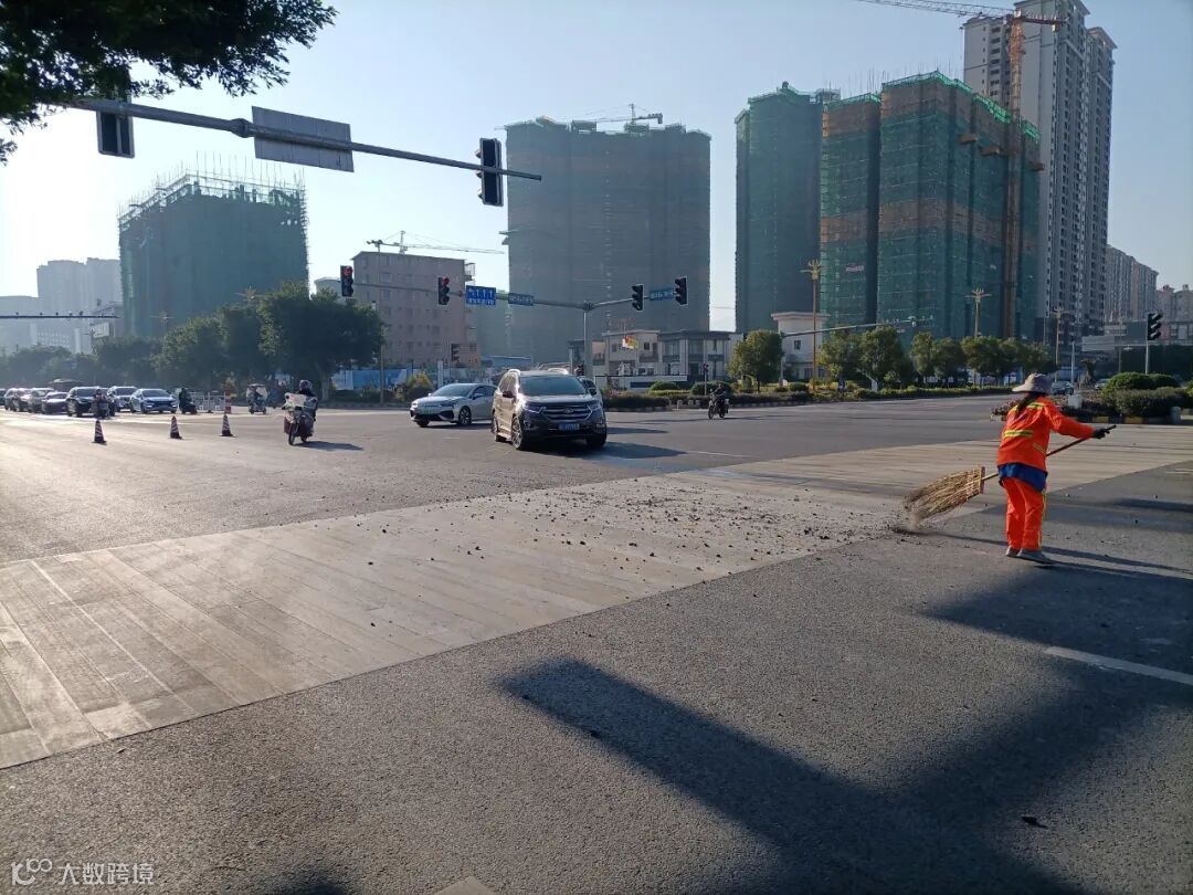 3、应急处理文体广场红绿灯人行横道车辆飘洒下大量石子。