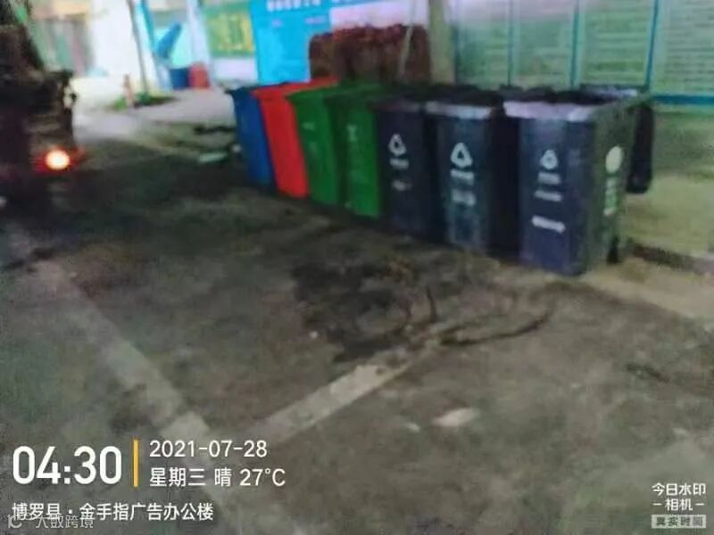 3、加强冲洗道路护栏、果皮箱、垃圾桶点。