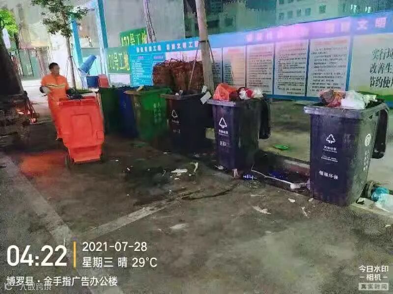 3、注意及时清掏果皮箱,做好果皮箱、垃圾桶点周边常态化保洁。