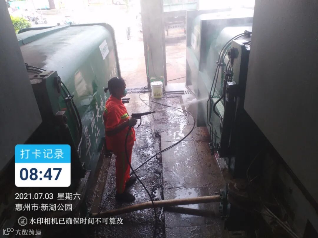 每日最少两次高压冲洗站内及站外地面,并进行喷雾消毒,继续加强防疫工作
