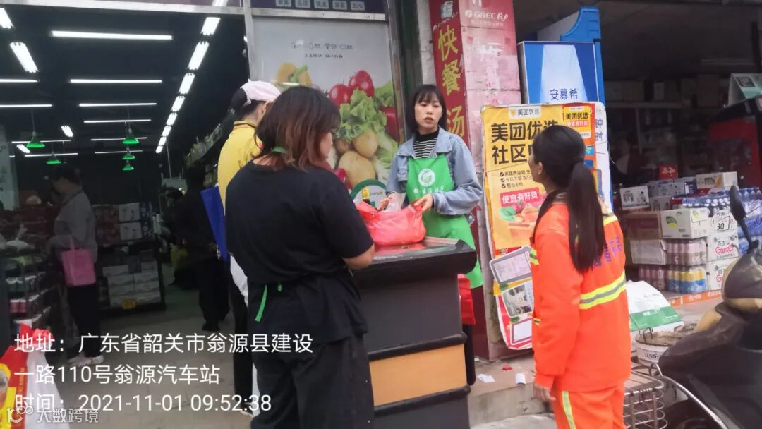 1、垃圾分类人员与车站旁新开(韶鲜)超市沟通垃圾干湿分离及定时定点投放,并在各小区守点宣传劝导。