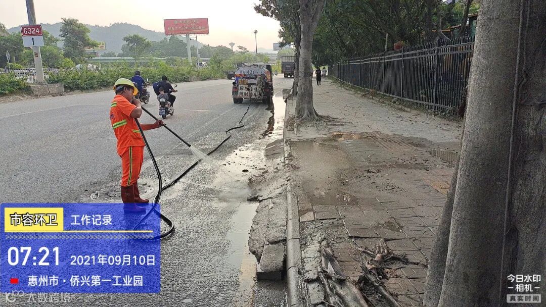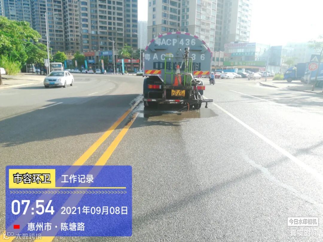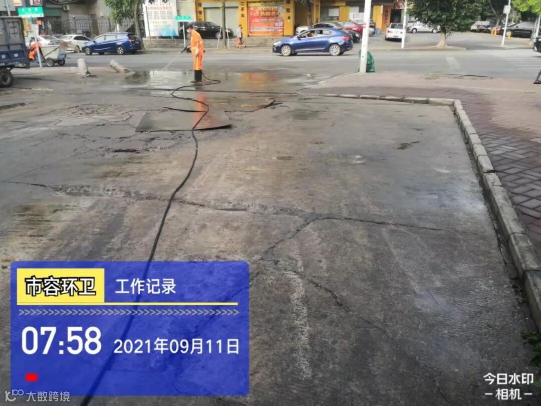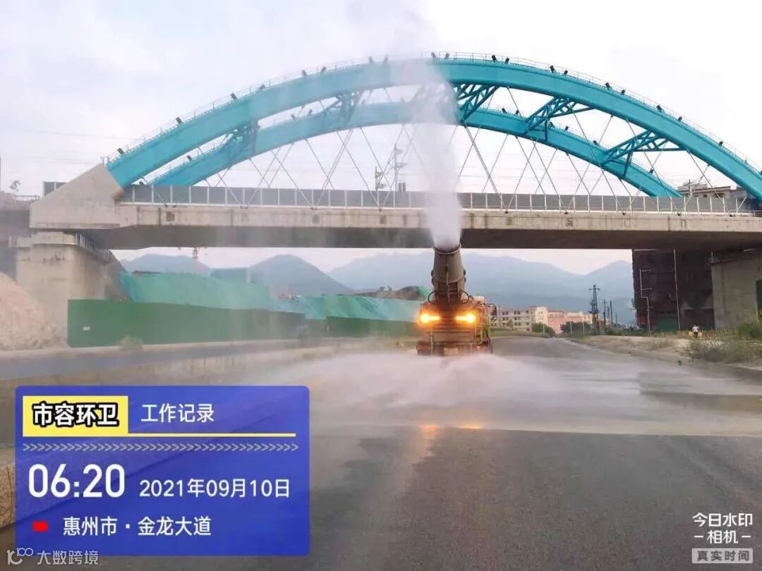 白天夜间常态化冲洗清扫辖区各路段,加强小金片喷雾降尘作业
