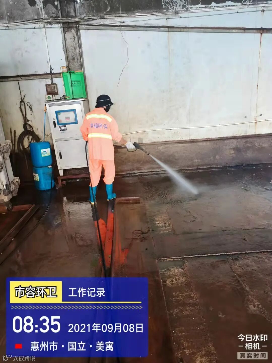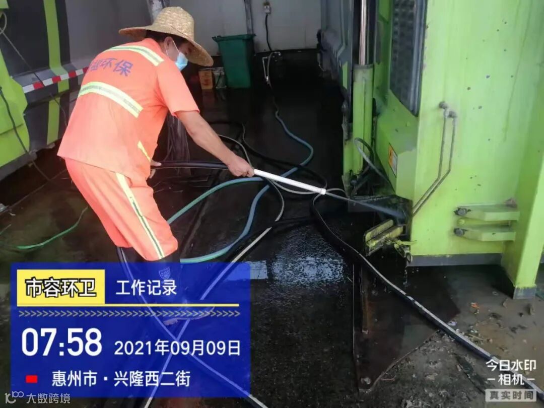 中转站/公厕日常作业及维护,每日两次以上高压冲洗并喷雾消毒站内外地面及箱体