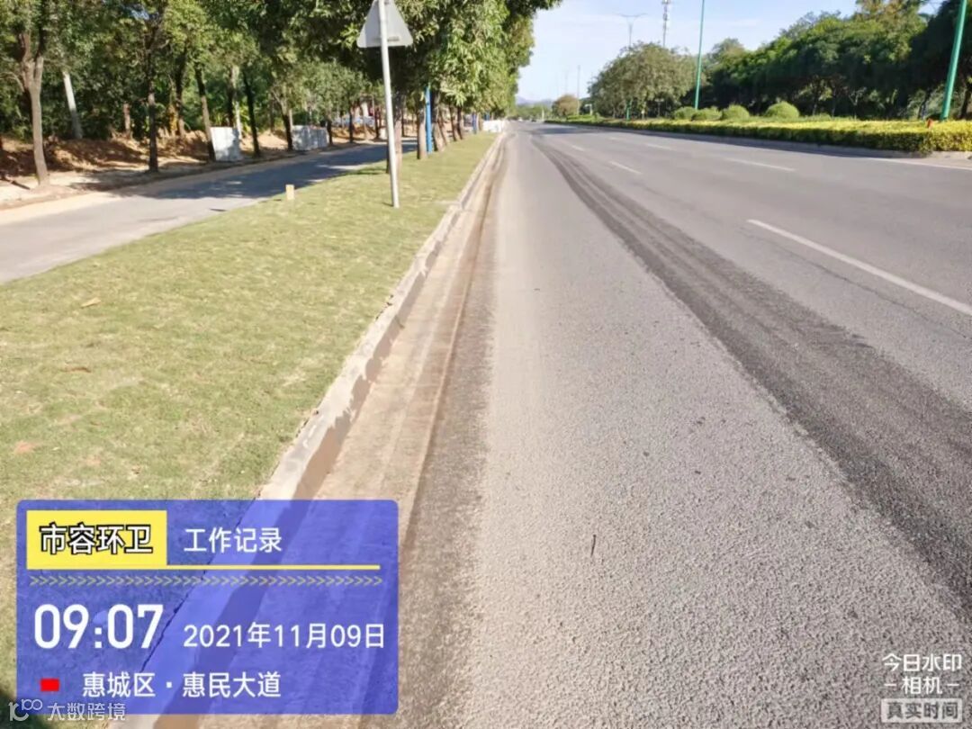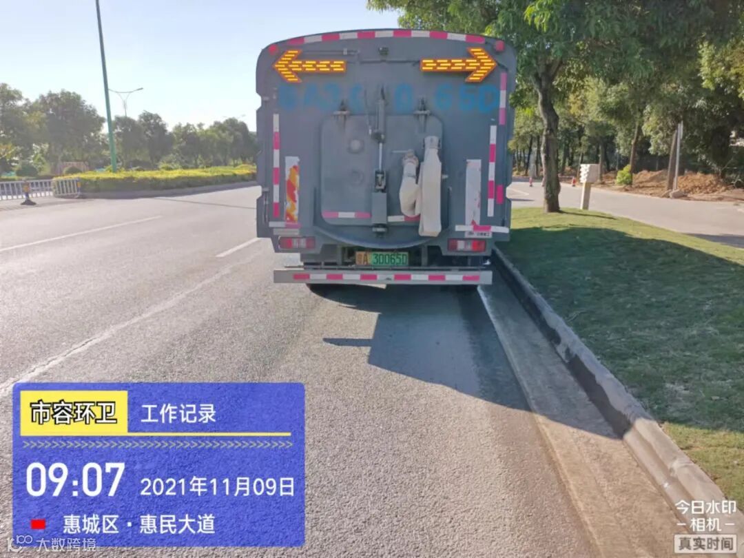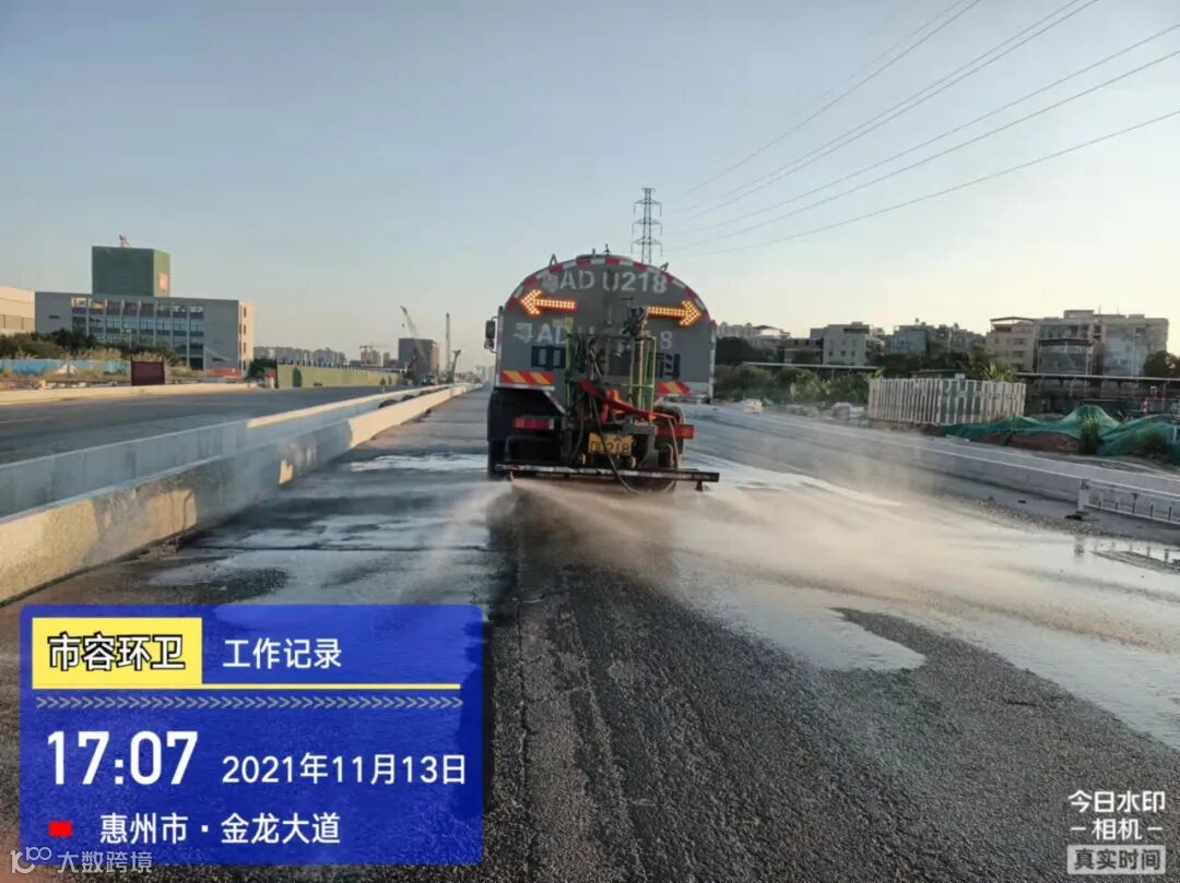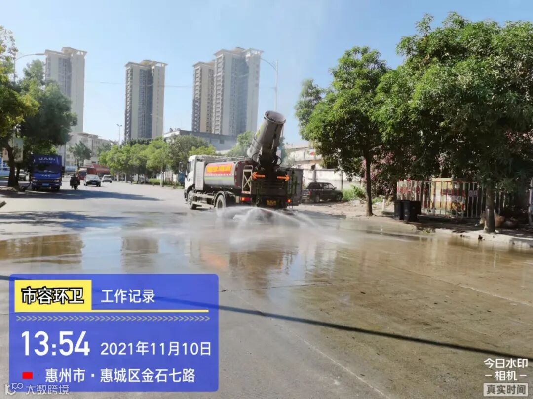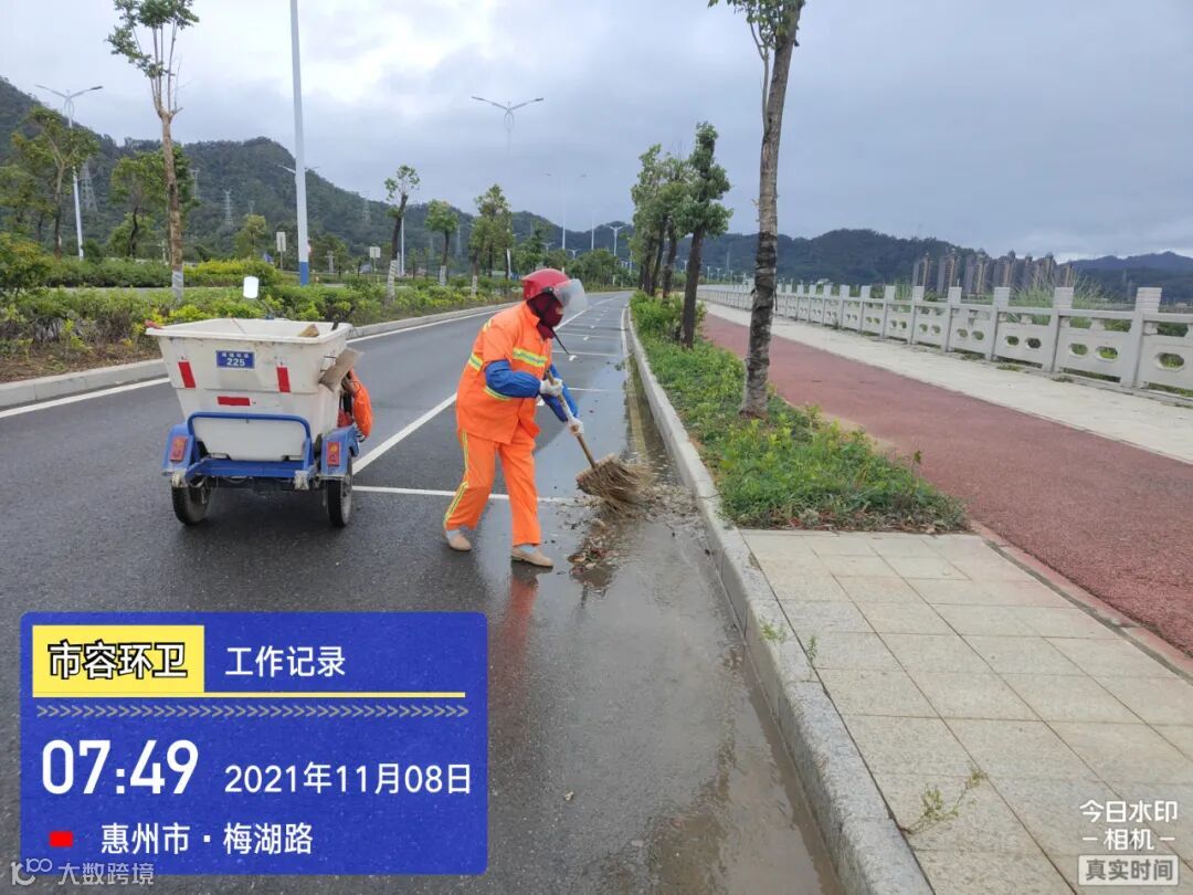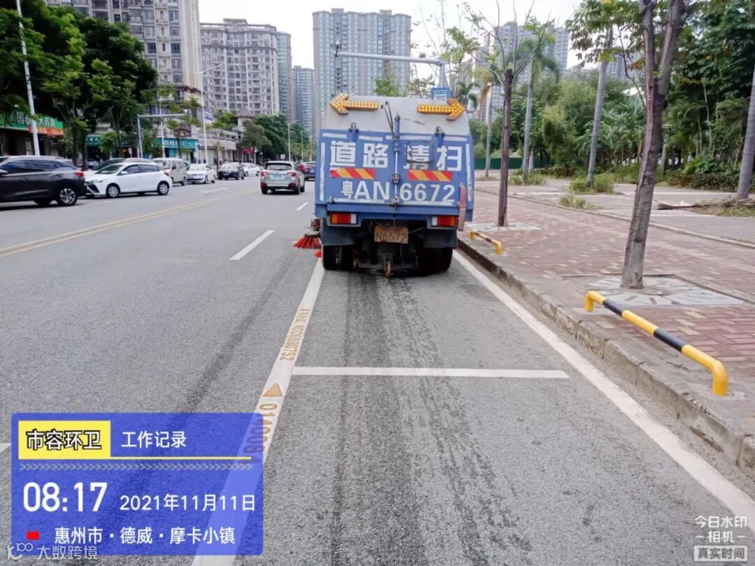 2、受大风天气影响,路面树叶增多,机械及常态保洁加强人行道及慢车道清扫频次,雾炮车针对金龙大道、金府路、惠州大道等重点路段加大喷雾降尘作业;