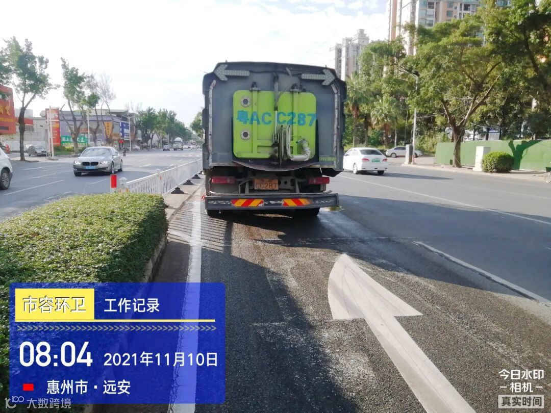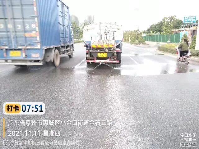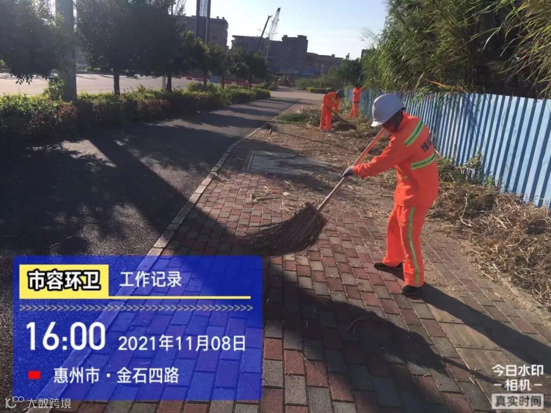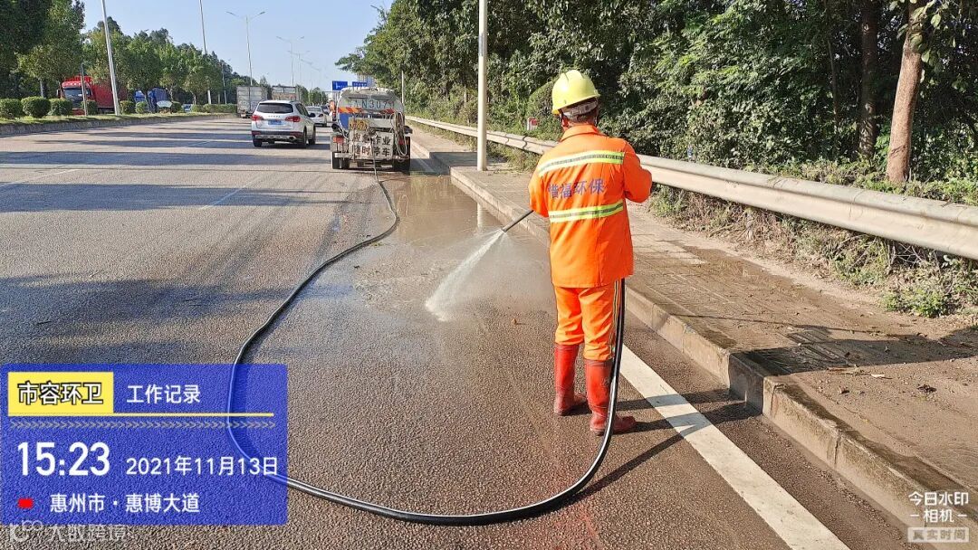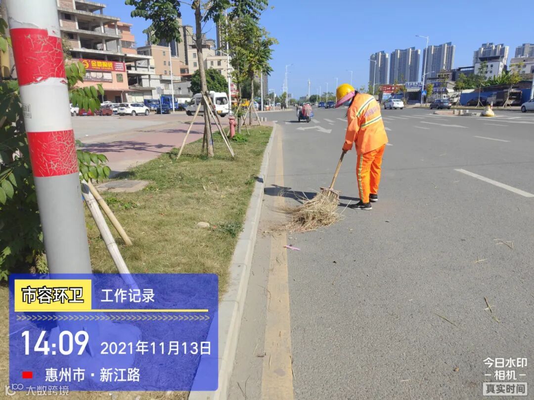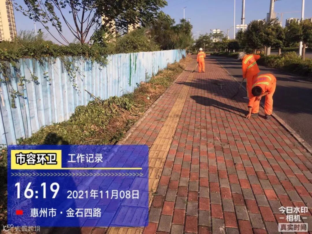 2、受大风天气影响,路面树叶增多,机械及常态保洁加强人行道及慢车道清扫频次,雾炮车针对金龙大道、金府路、惠州大道等重点路段加大喷雾降尘作业;
