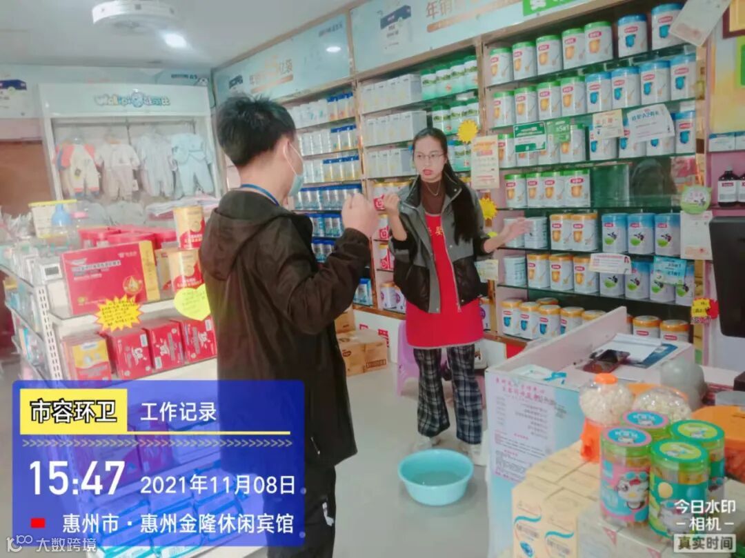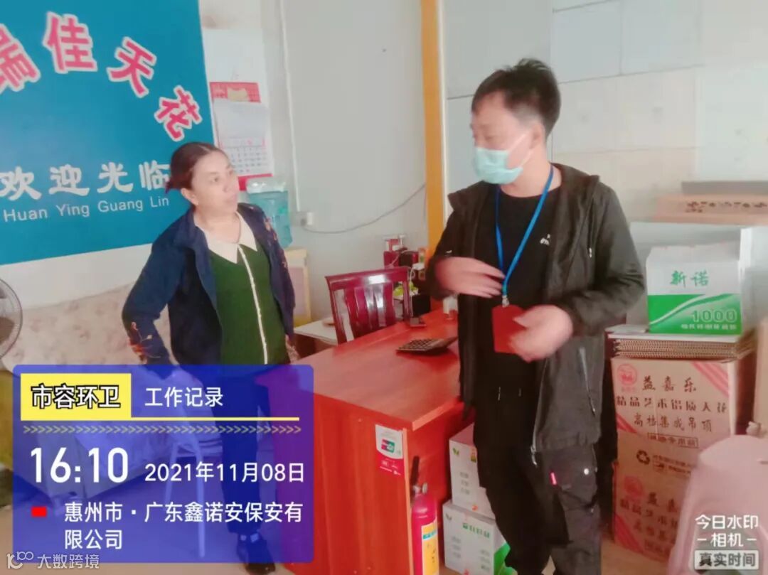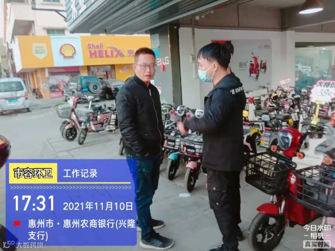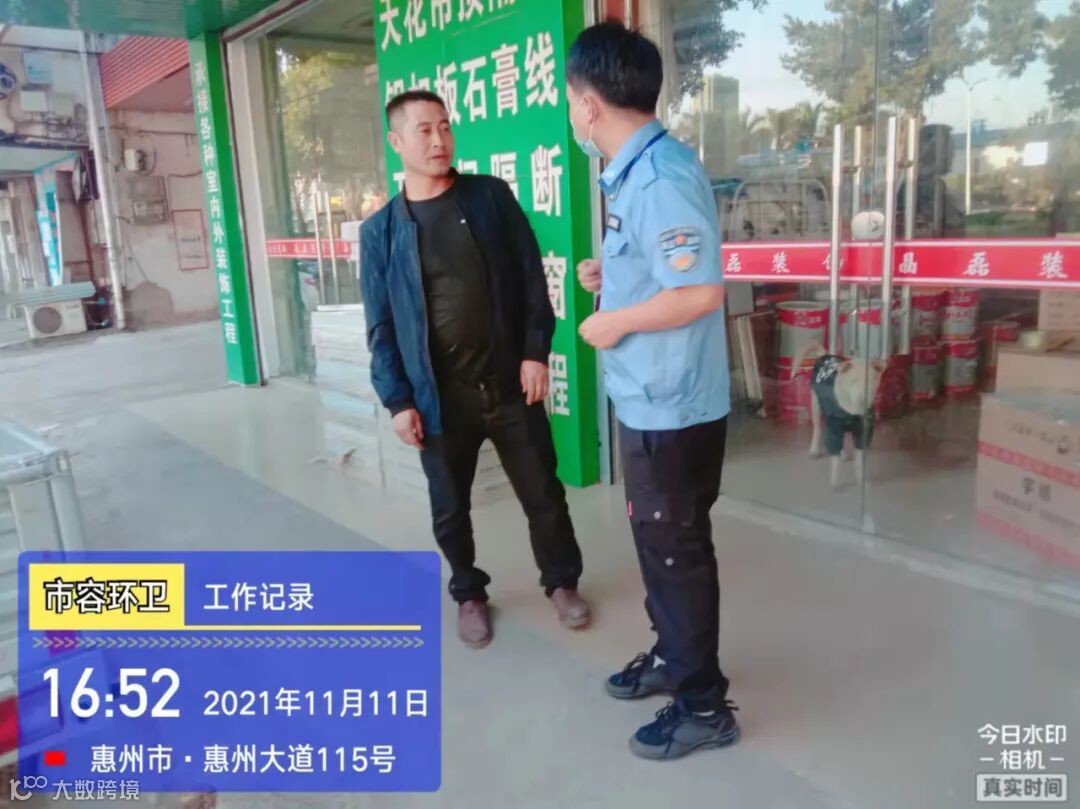 3、劝导队针对惠州大道、兴隆街沿线商铺行垃圾定点投放劝导,减少垃圾乱丢弃现象;