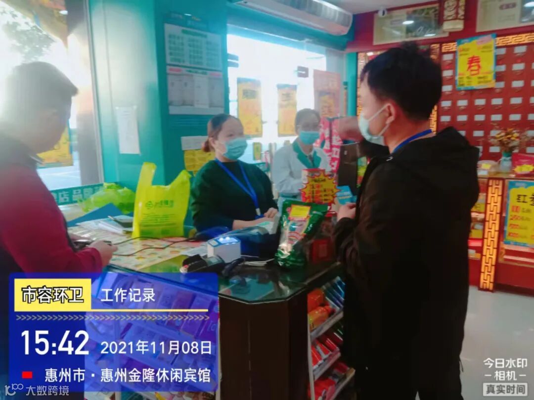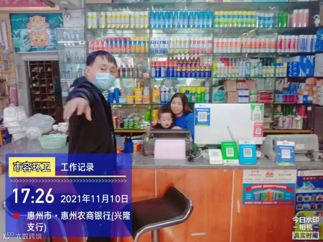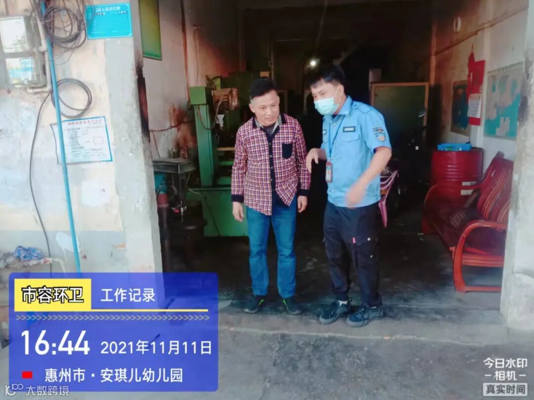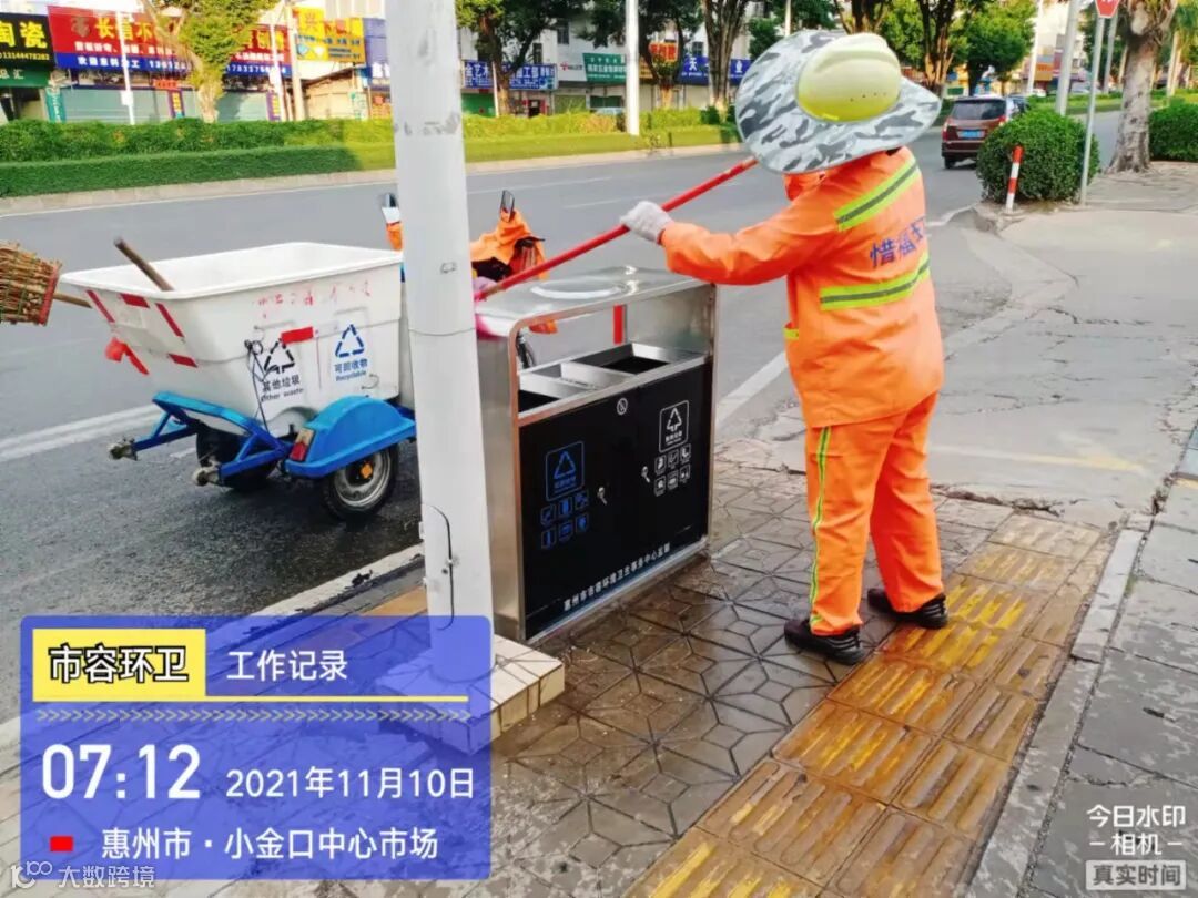3、劝导队针对惠州大道、兴隆街沿线商铺行垃圾定点投放劝导,减少垃圾乱丢弃现象;