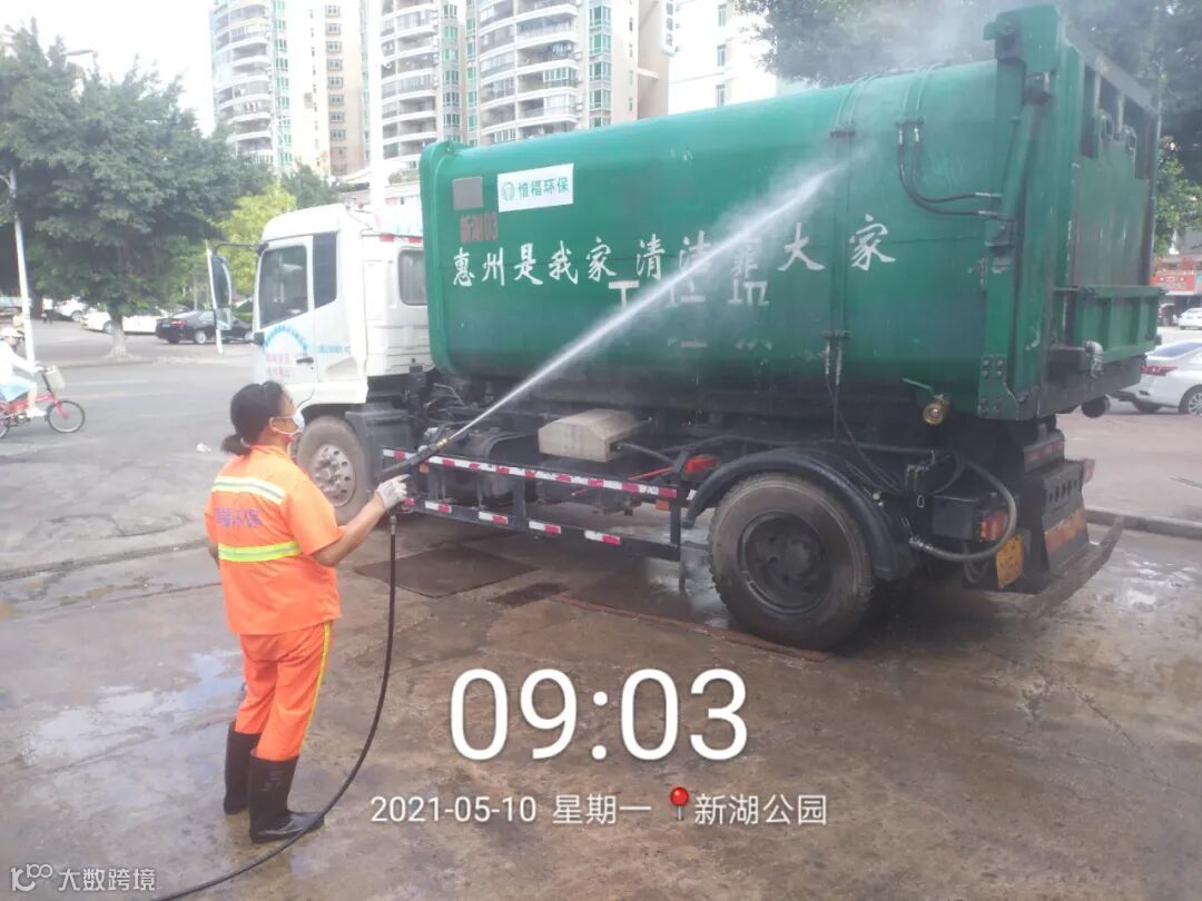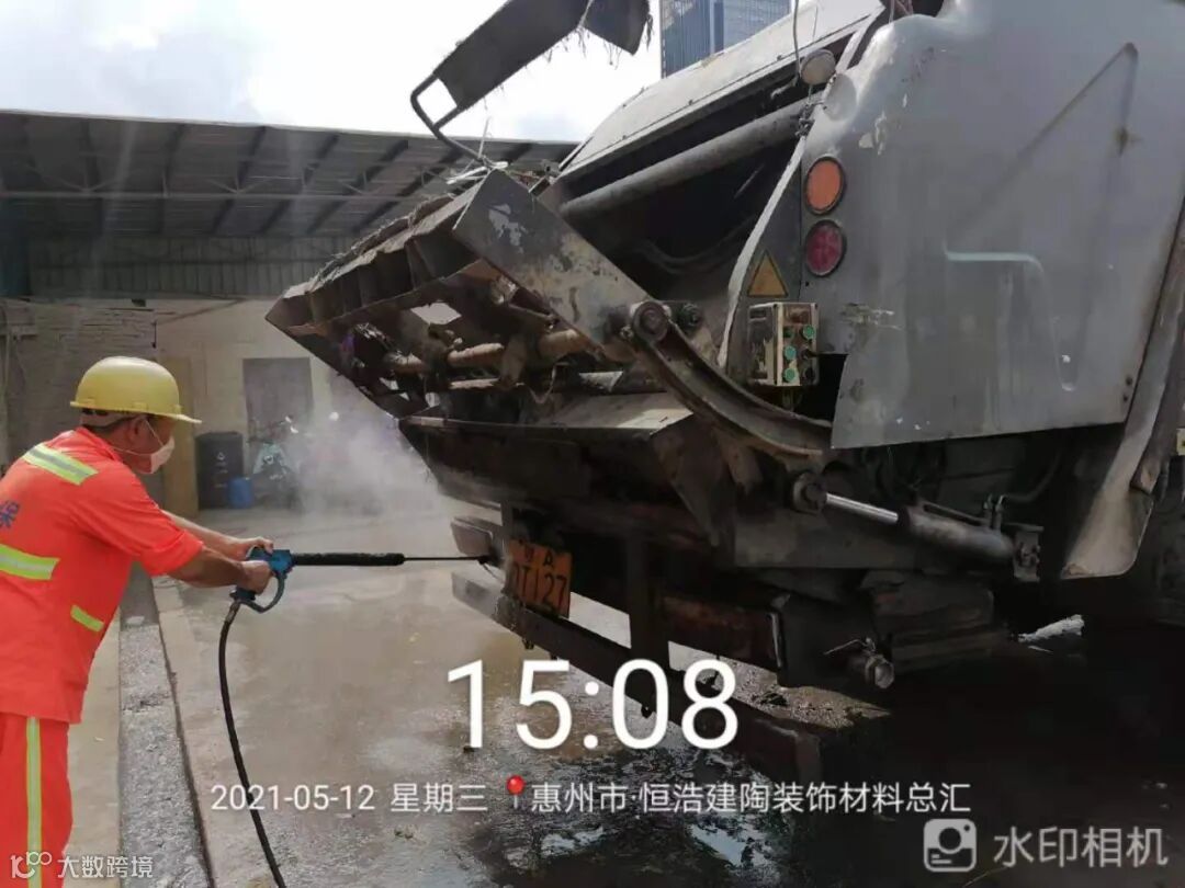 直压线及时清运桶点垃圾并将桶点周边清扫干净,定期高压冲洗收运车辆,保持车容车貌