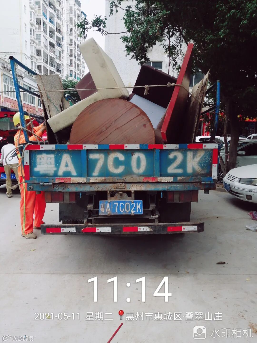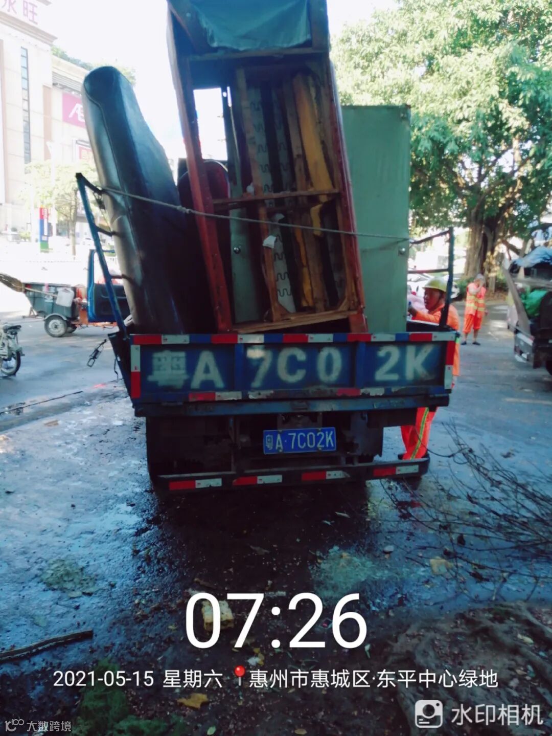 7、惠城大件废弃物、绿化垃圾收运及处理,本周出动车次398车,清理总重量约465吨。