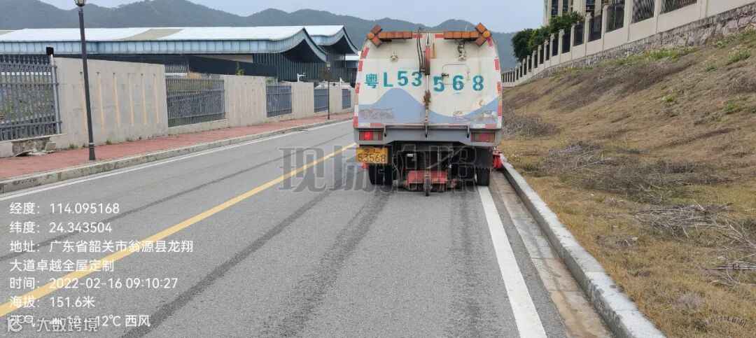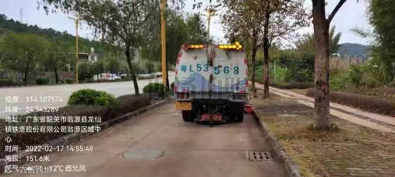 2、利用扫路车对路沿路边角进行跟进吸扫并附以人工清理。