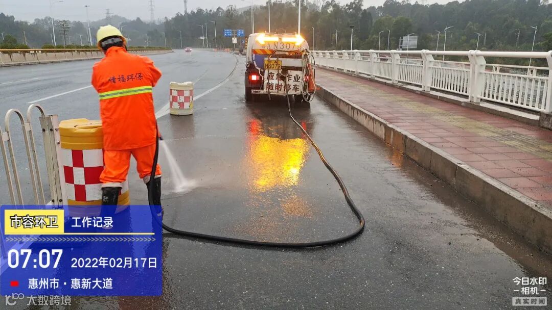 白天夜间常态化冲洗清扫辖区各路段及沿线喷雾洒水降尘作业