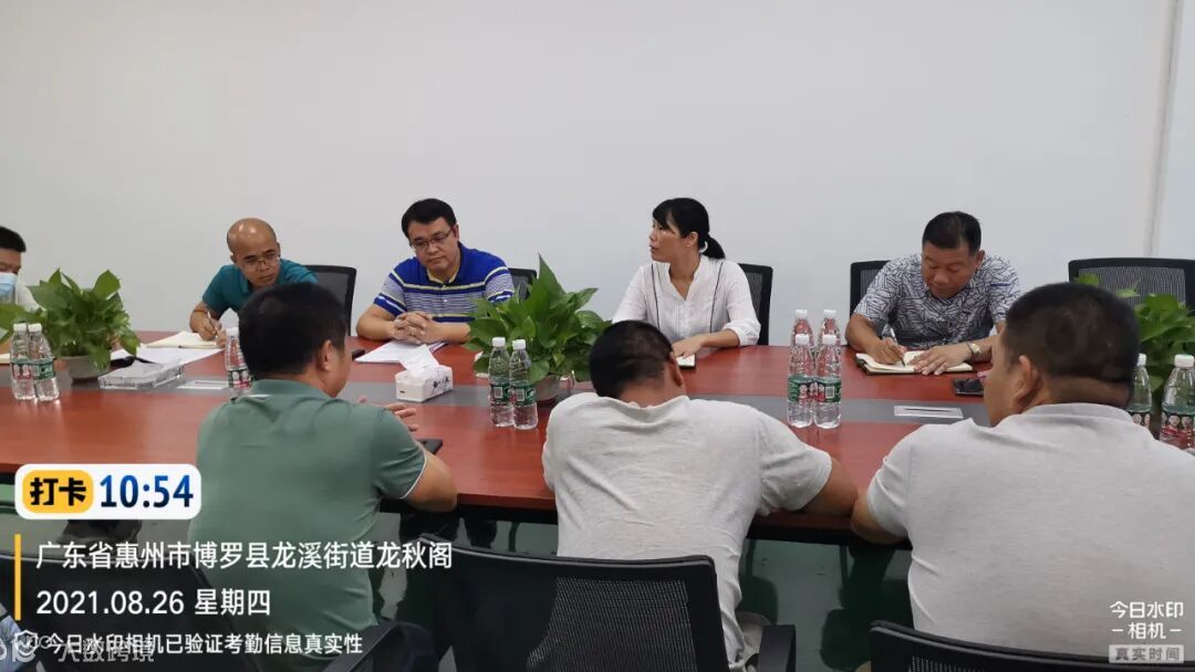 (县市容环境卫生事务中心叶局、管理股刘股、工作组刘股及工作组成员、惜福公司靳总及龙溪项目管理人员召开创文创卫应对布置会,几位领导作工作指示。)