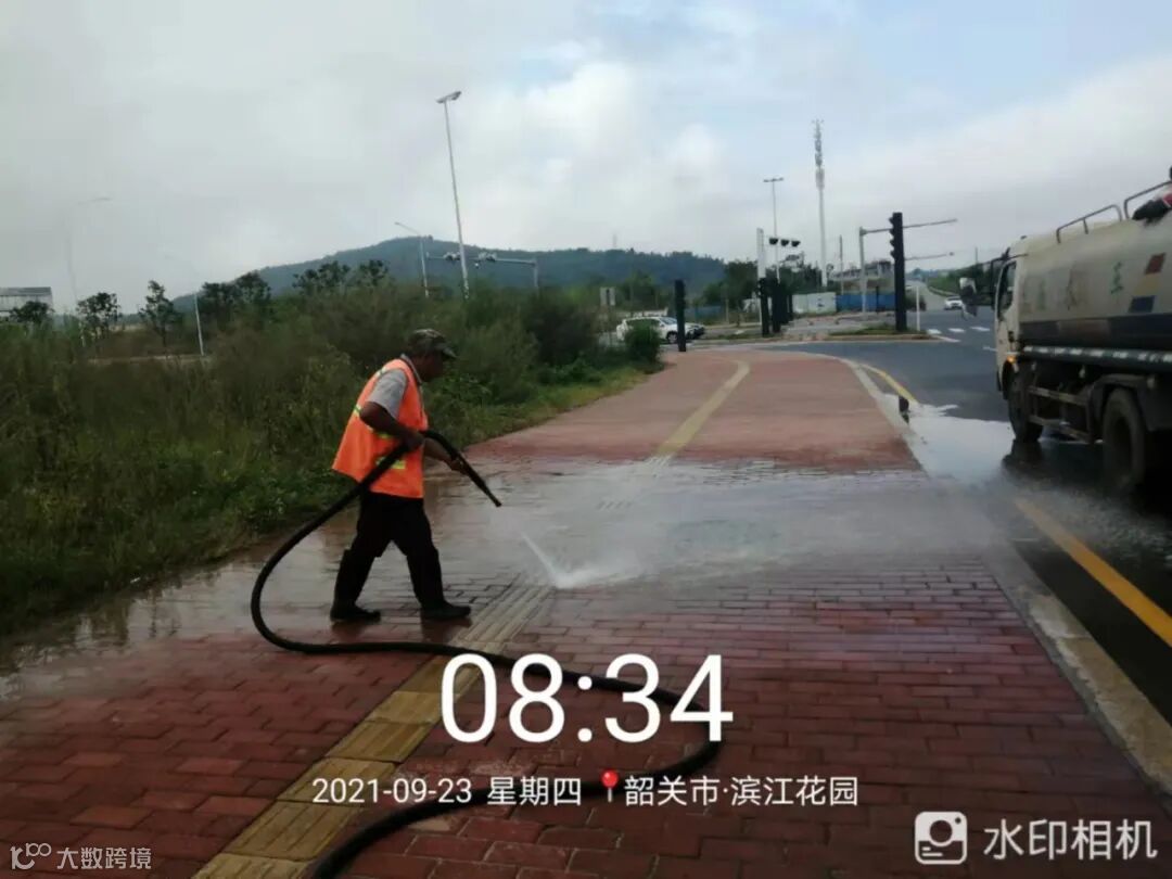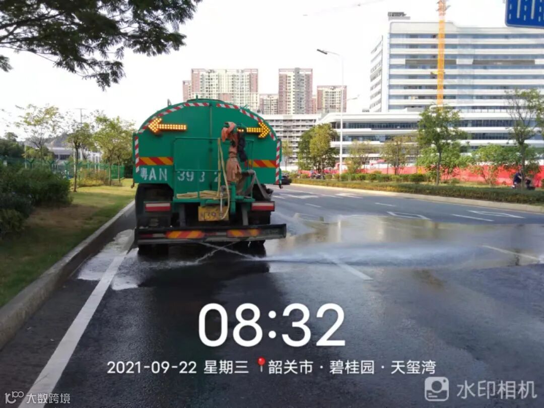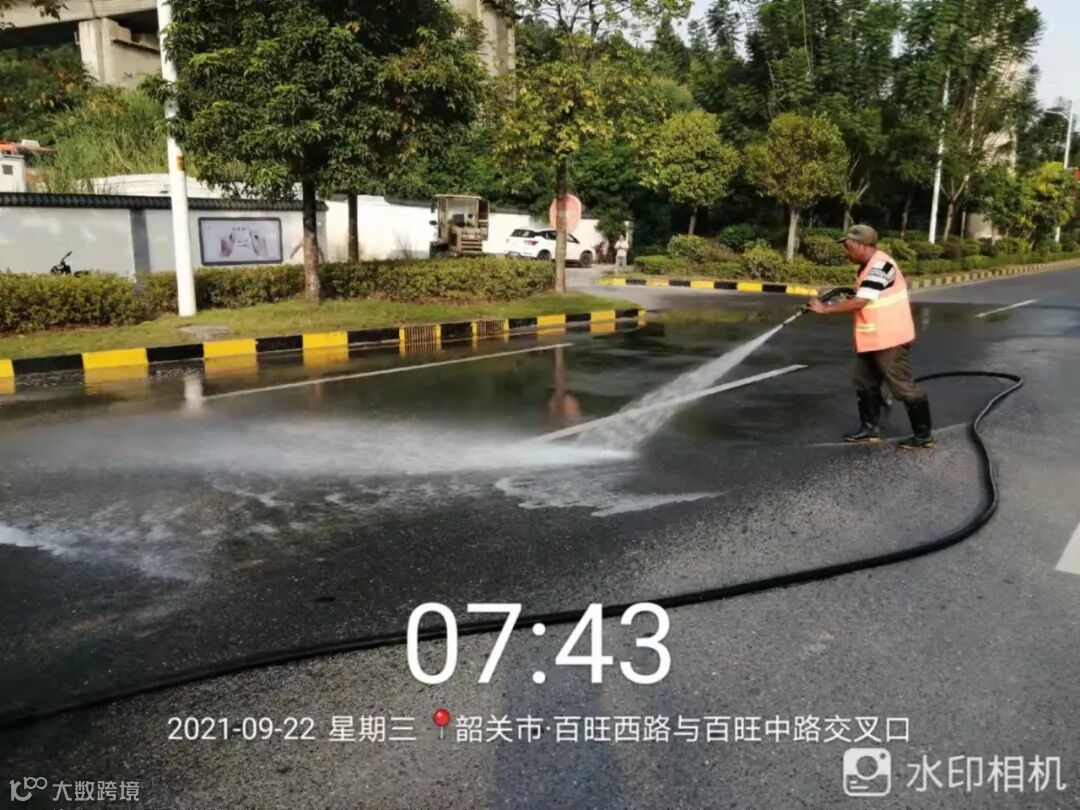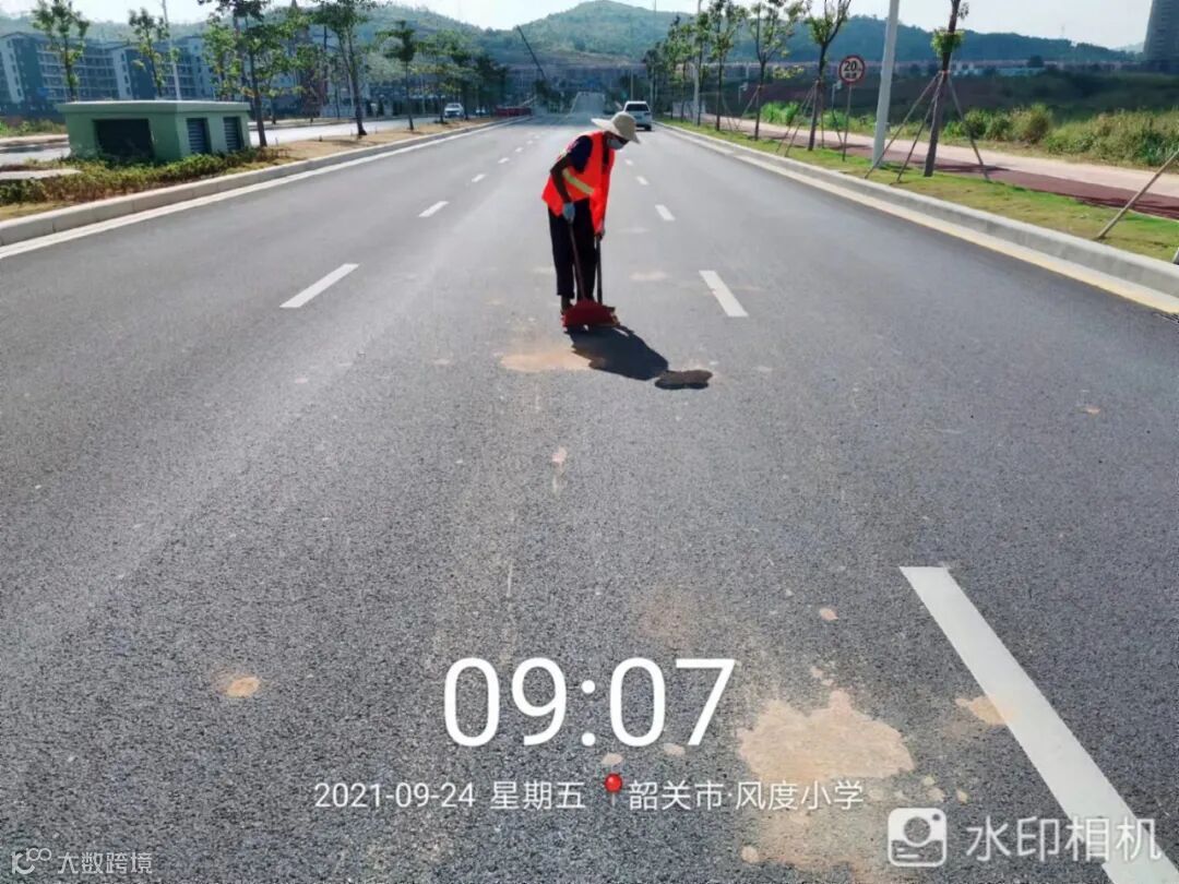 2、根据天气情况随时增加喷水洒水频率,降低干燥给路面带来的高气温,增加空气湿度;