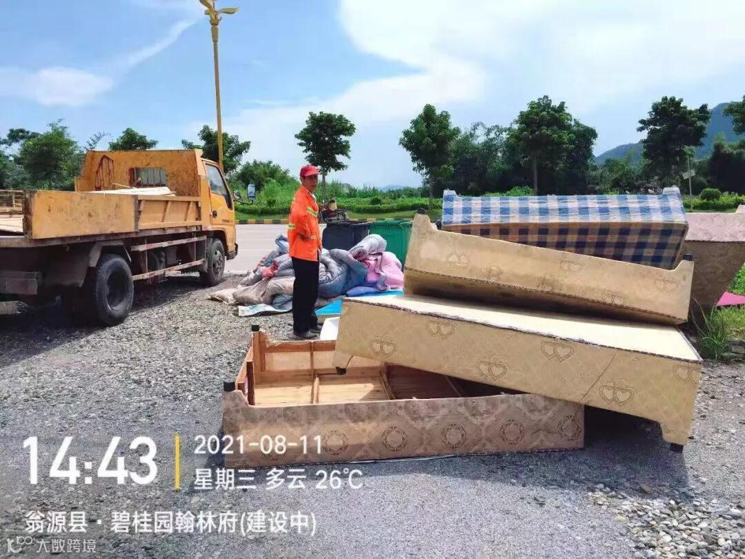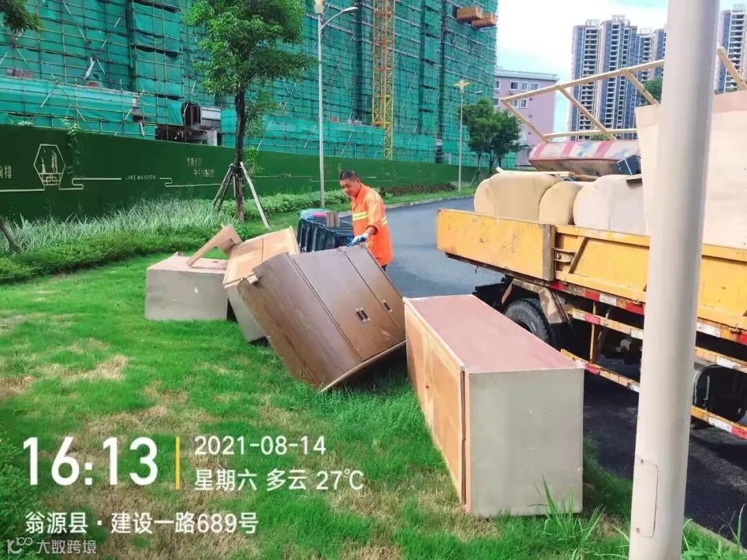 4、突击队清理大量大件废弃物约85.76吨、非生活垃圾(装修垃圾、树枝树叶等)重量约112.36吨。