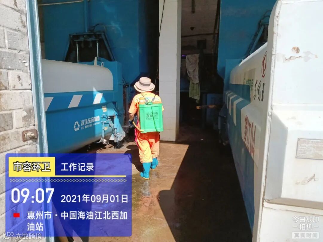 中转站/公厕日常作业及维护,每日两次以上高压冲洗并喷雾消毒站内外地面及箱体