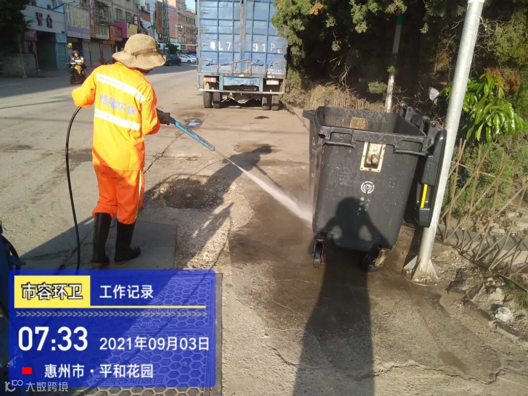直压线及时清运桶点垃圾并将桶点周边清扫冲洗干净,勤洗作业车辆保证车容车貌