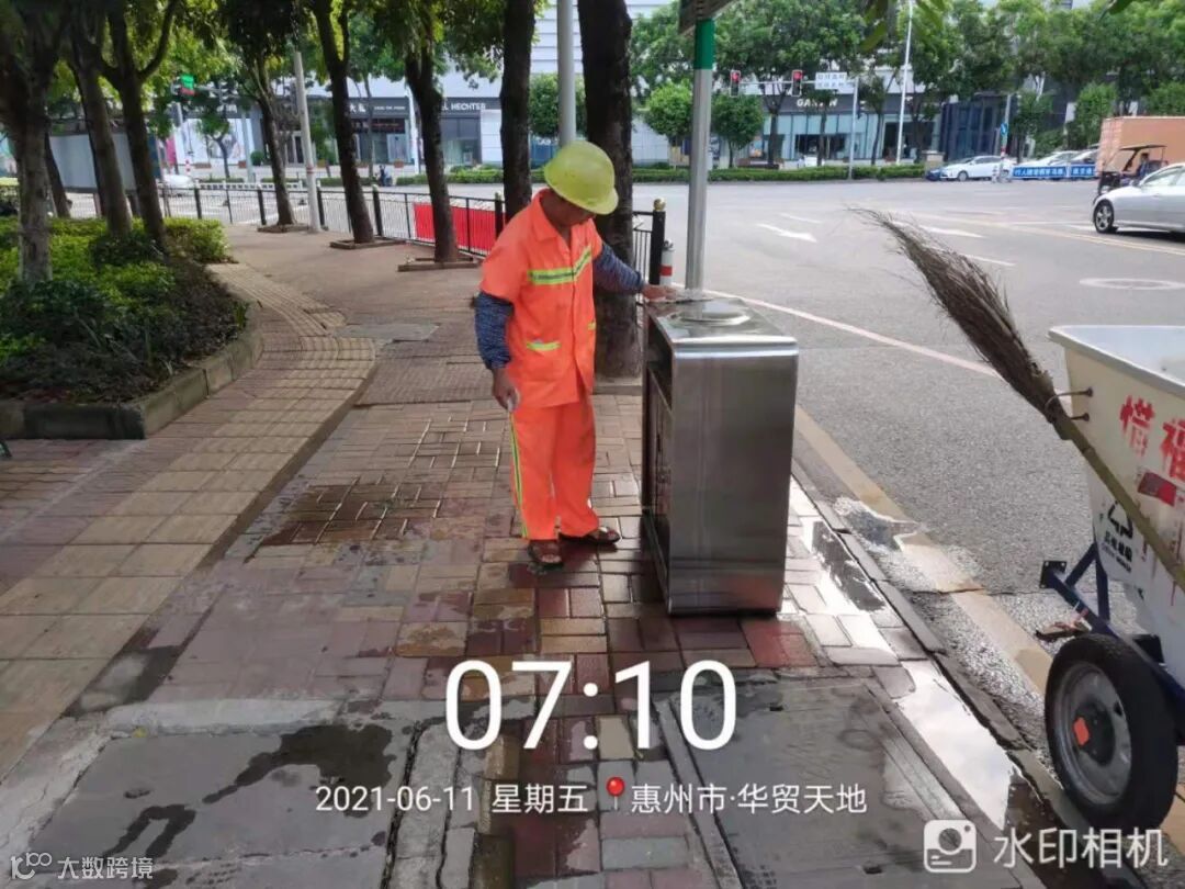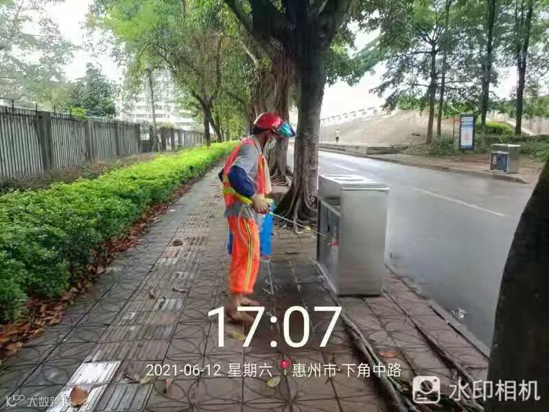 精细化保洁辖区各路段,加强果皮箱清洗消毒