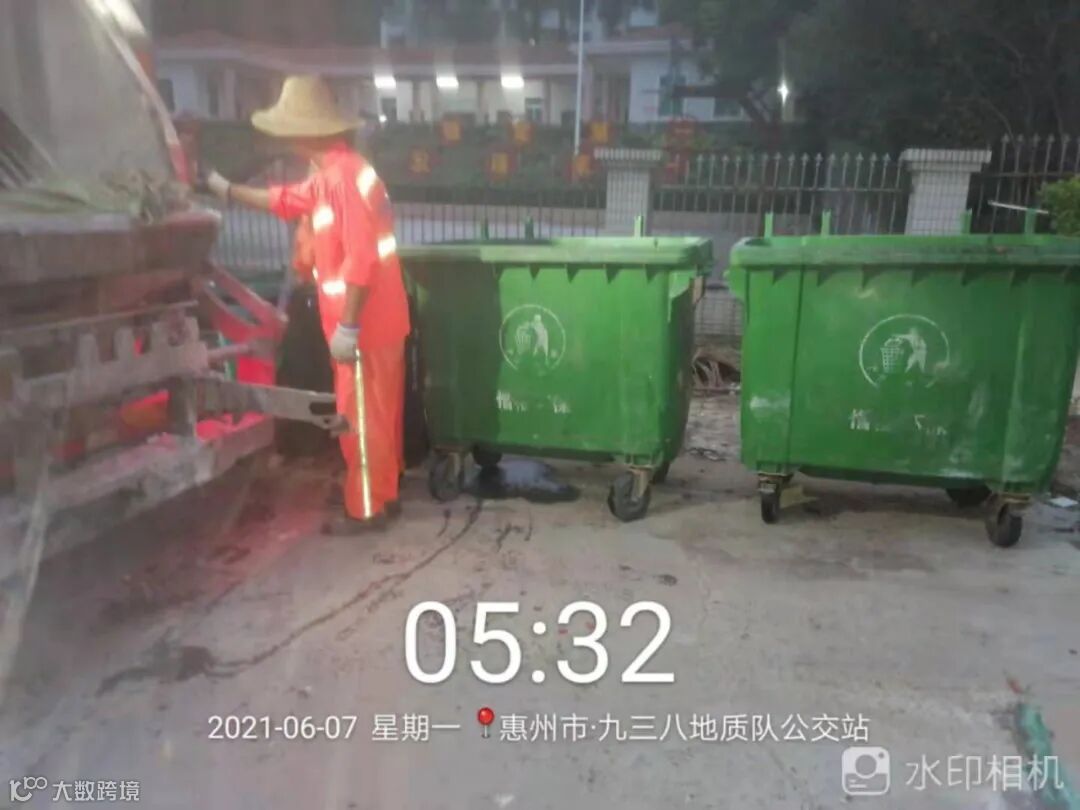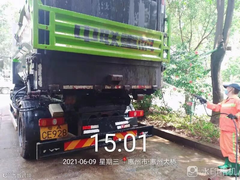 直压线及时清运桶点垃圾并将桶点周边清扫干净,常态化高压冲洗收运车辆,时刻保持车容车貌