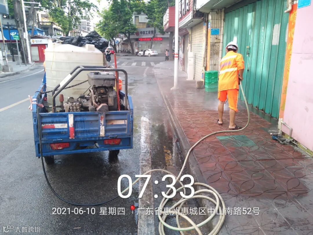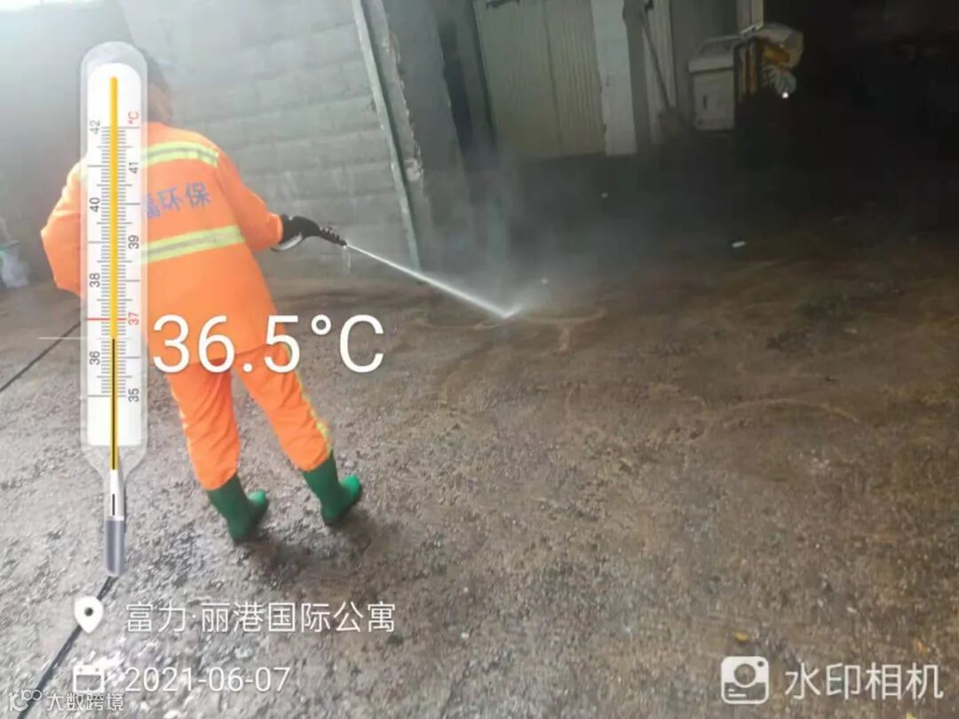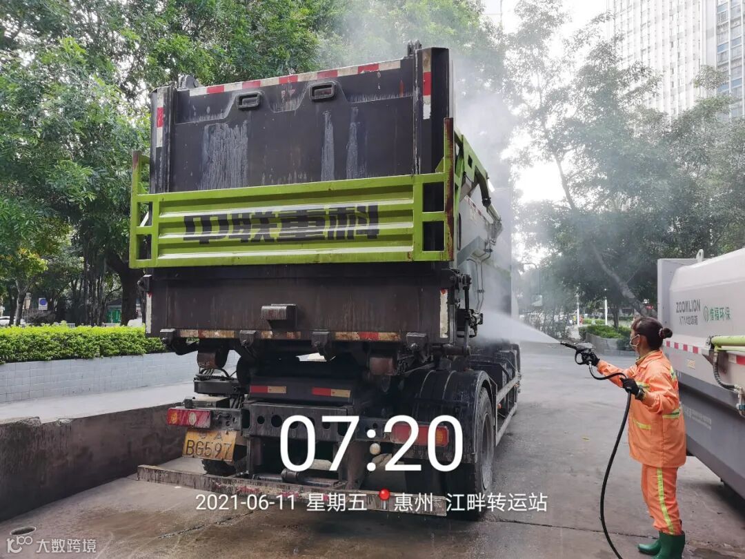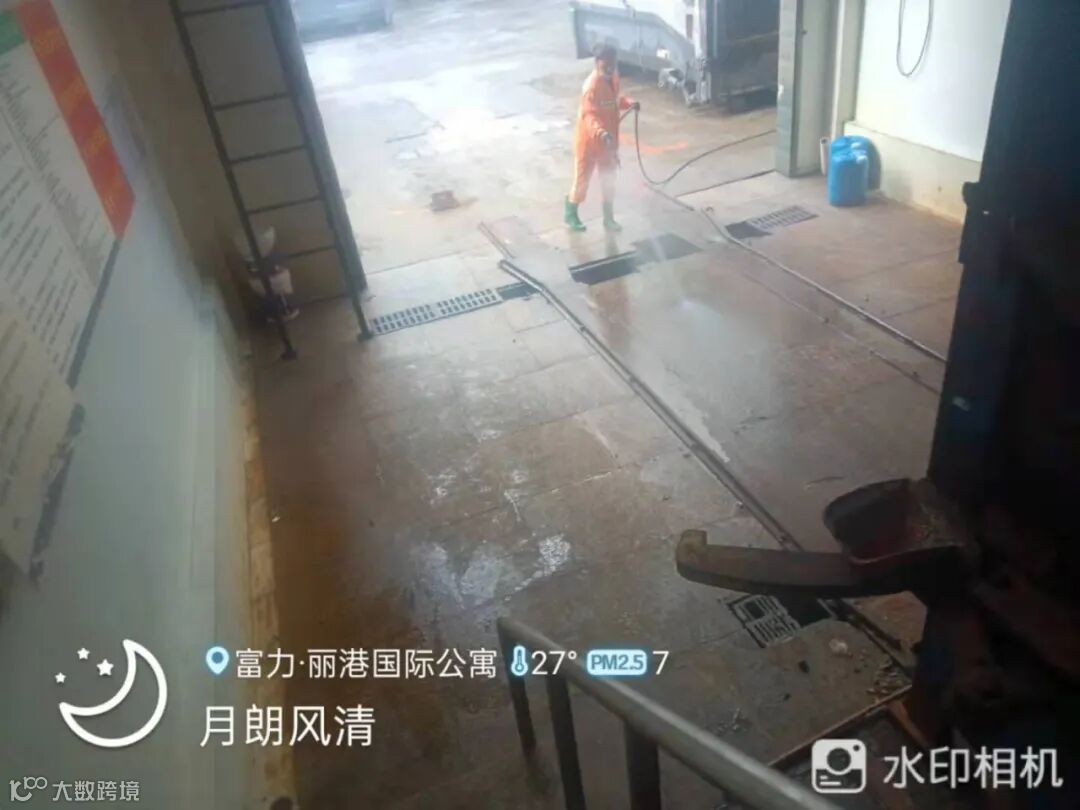 每日最少两次高压冲洗站内及站外地面,并进行喷雾消毒,继续加强防疫工作