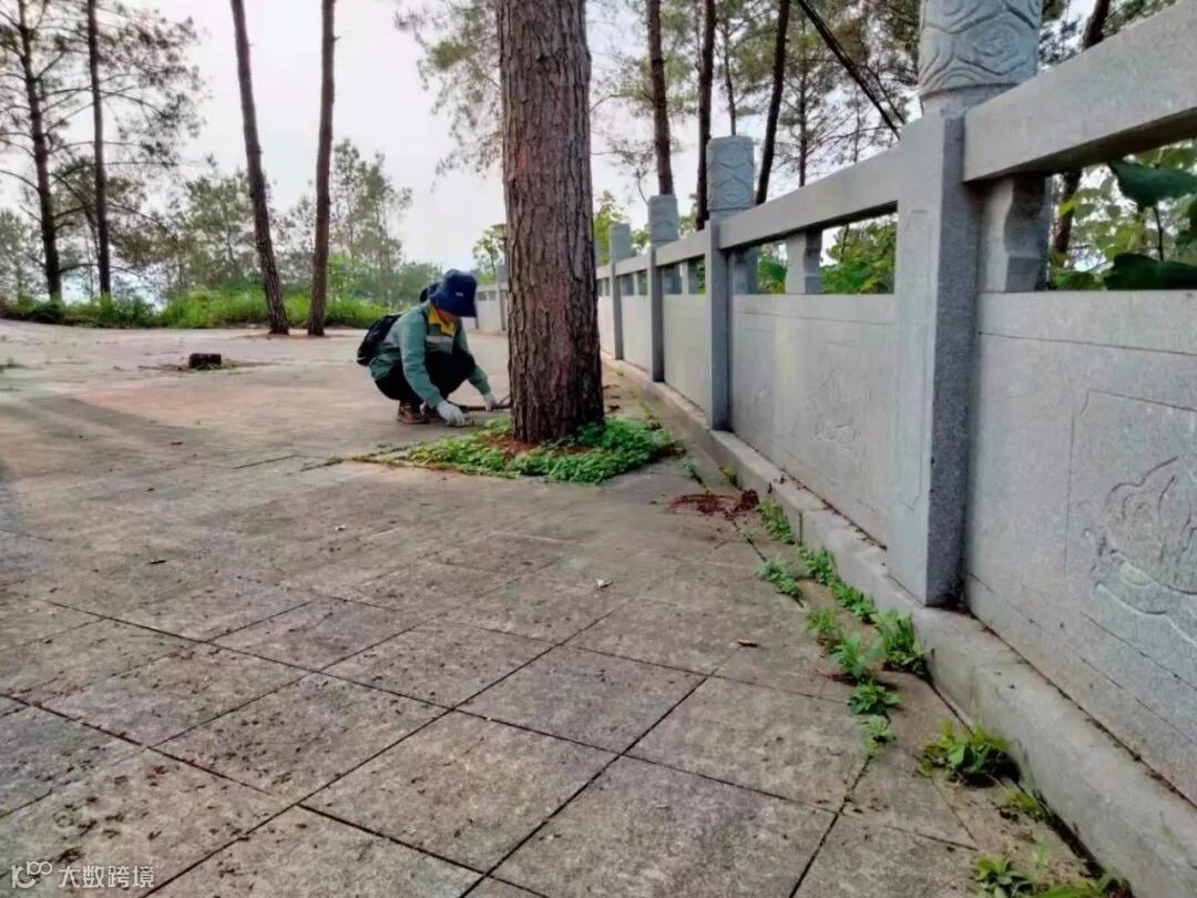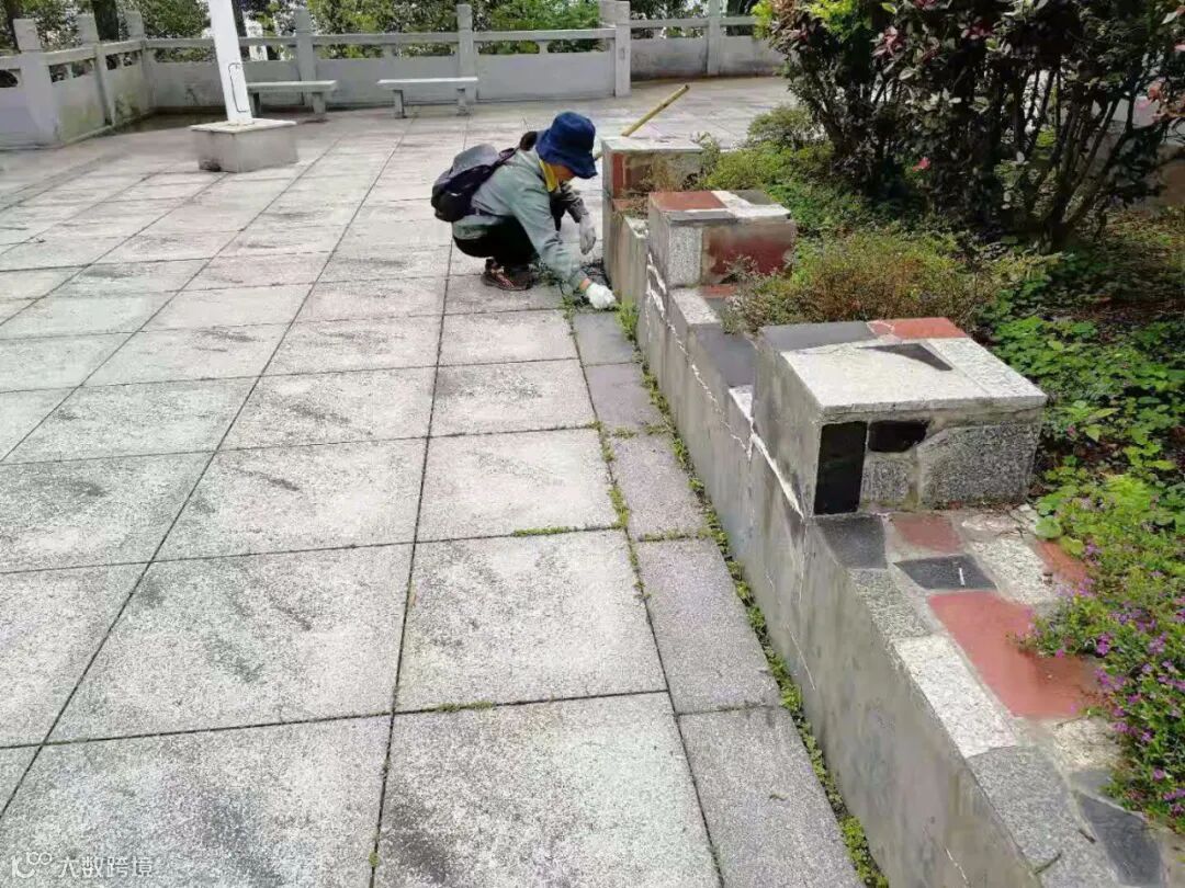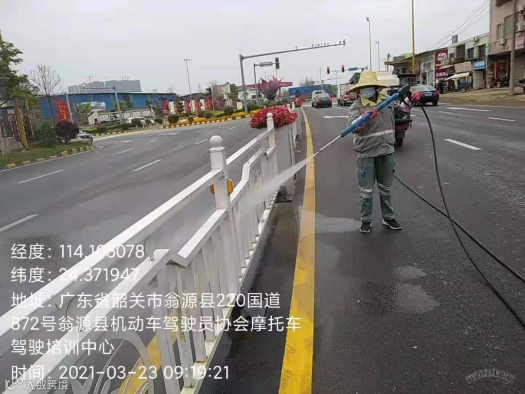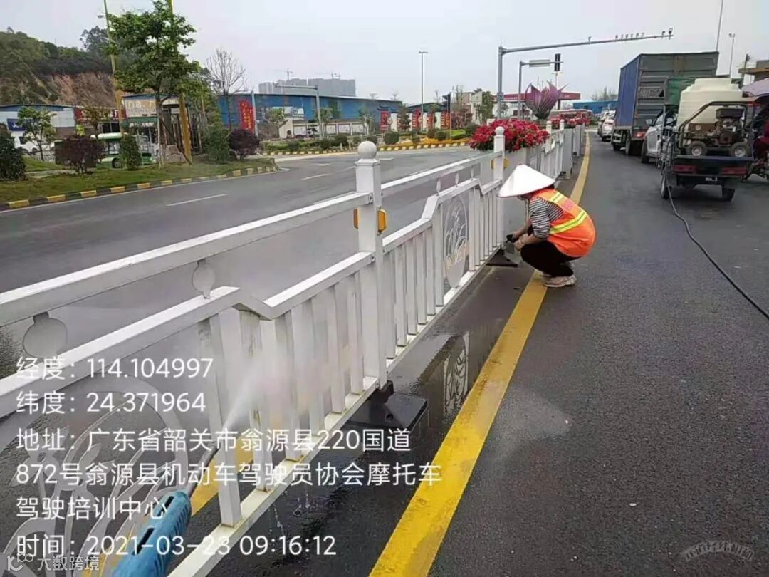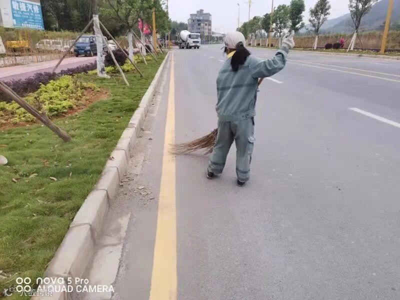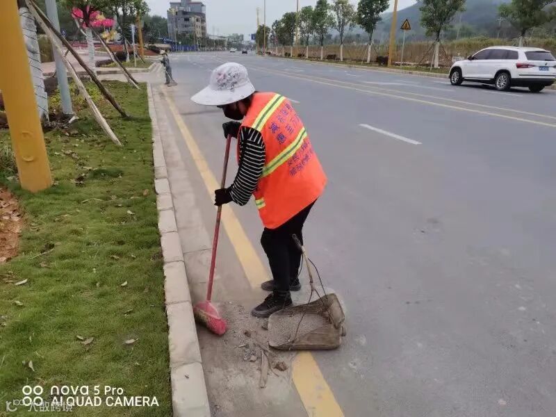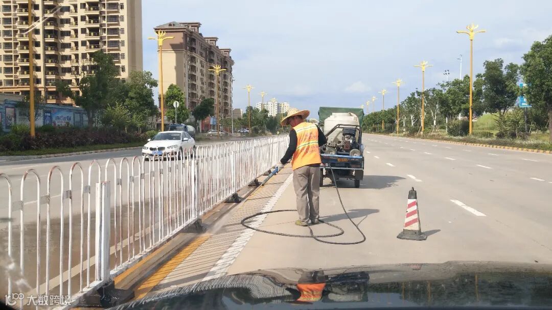 3、清理城区龙仙公园路沿杂草,全面冲洗清擦中间护栏。