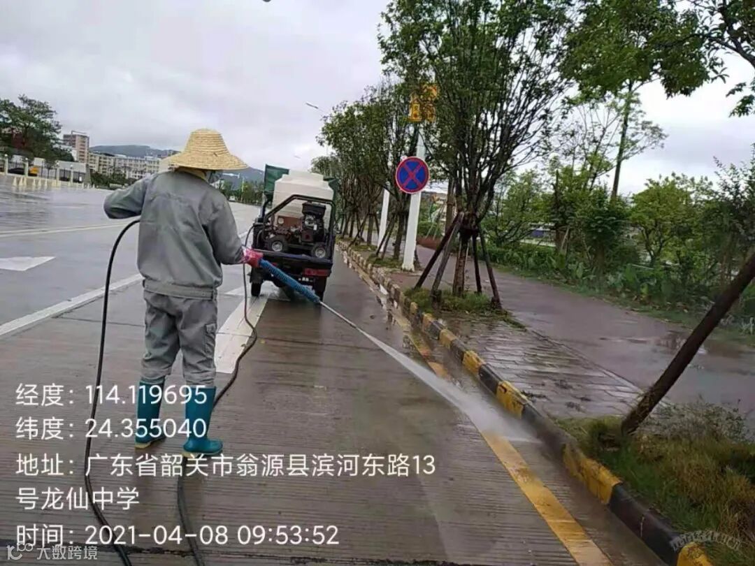 1、应急处理罗坑水付屋段工程车飘洒路面泥沙。