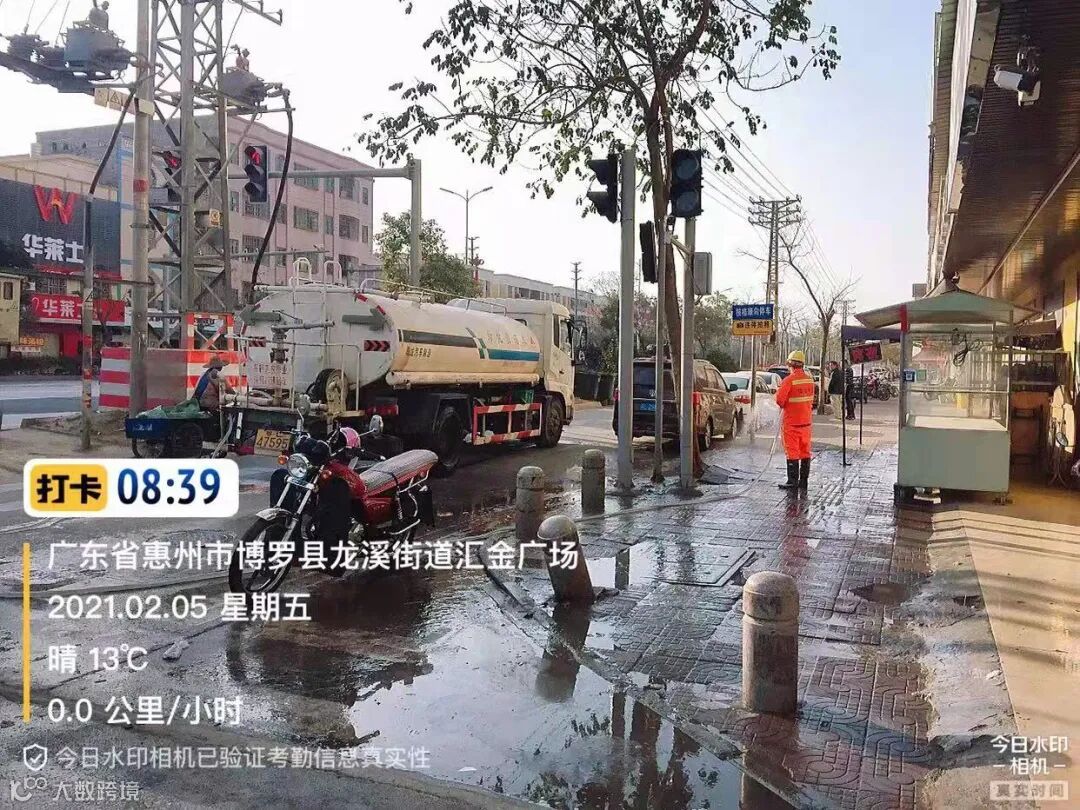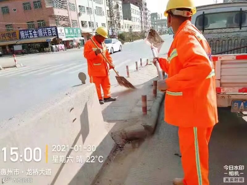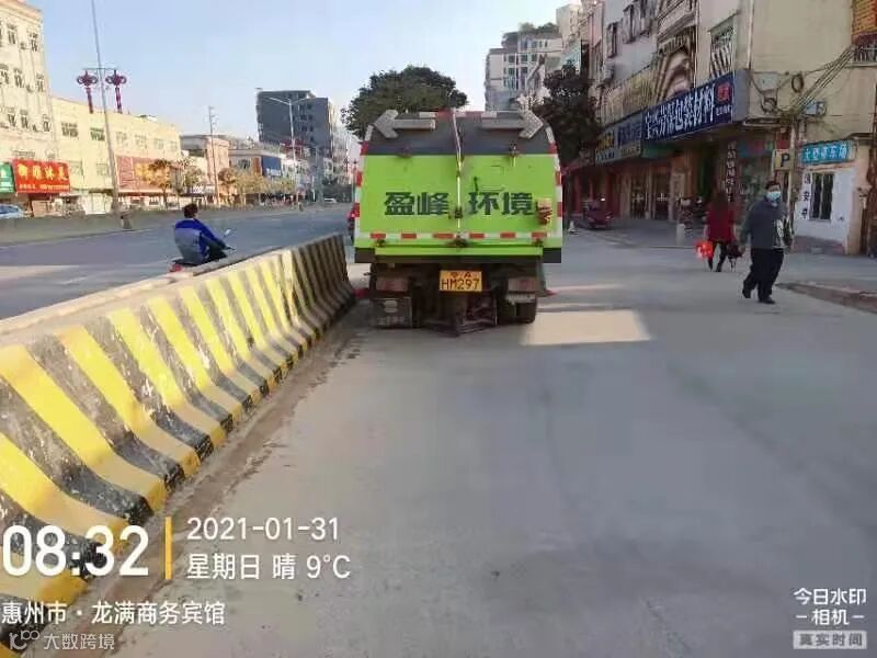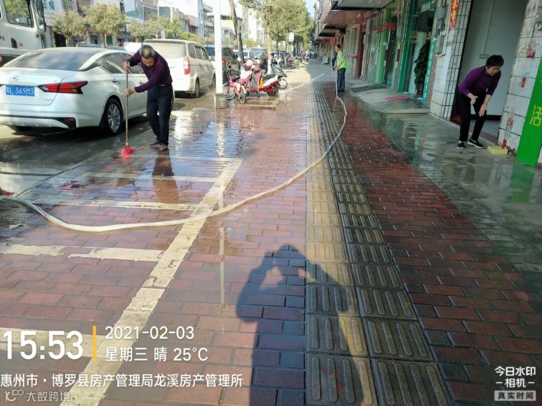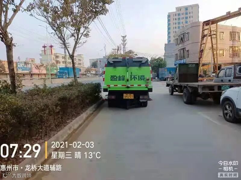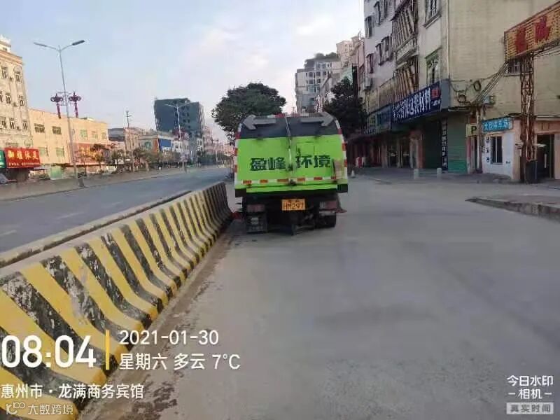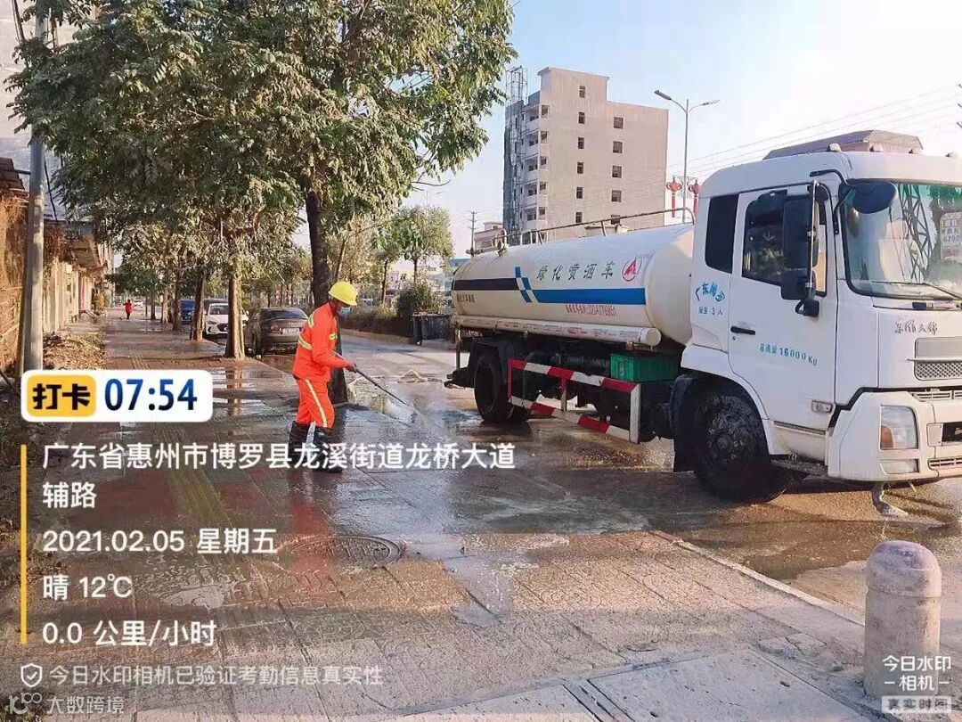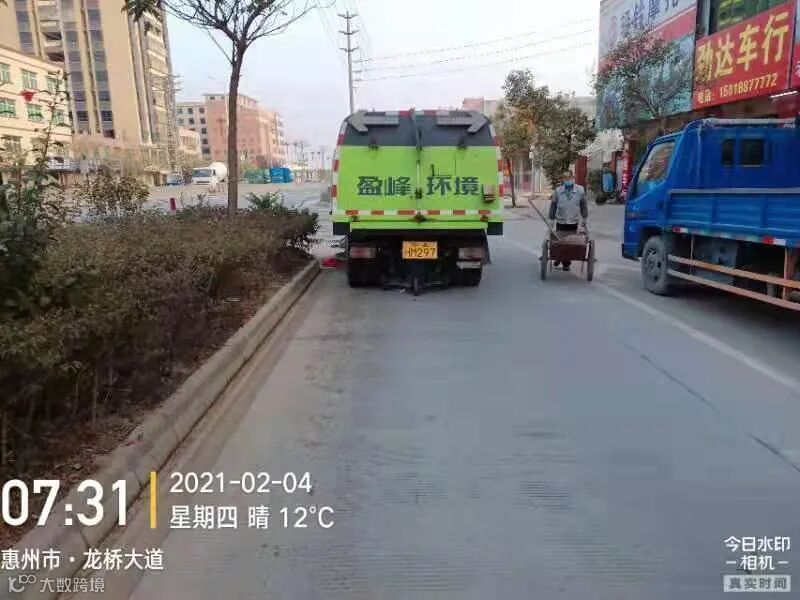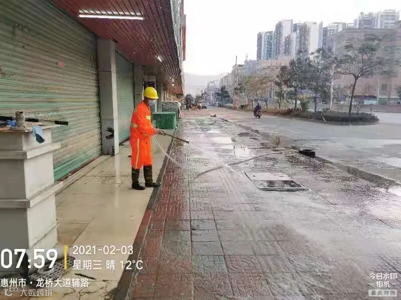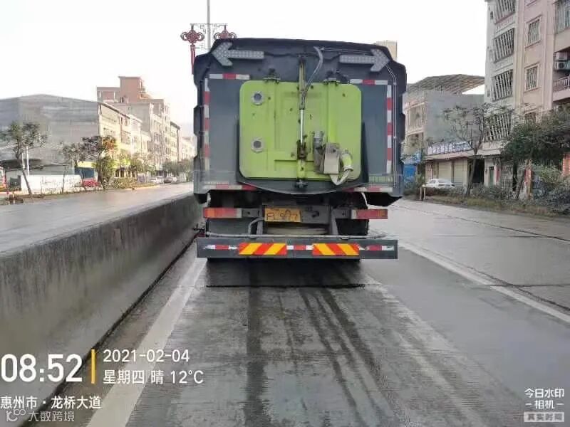 3、春节前完成镇区主街道人行道第二遍冲洗,加强镇区和龙桥大道洒水降尘作业。