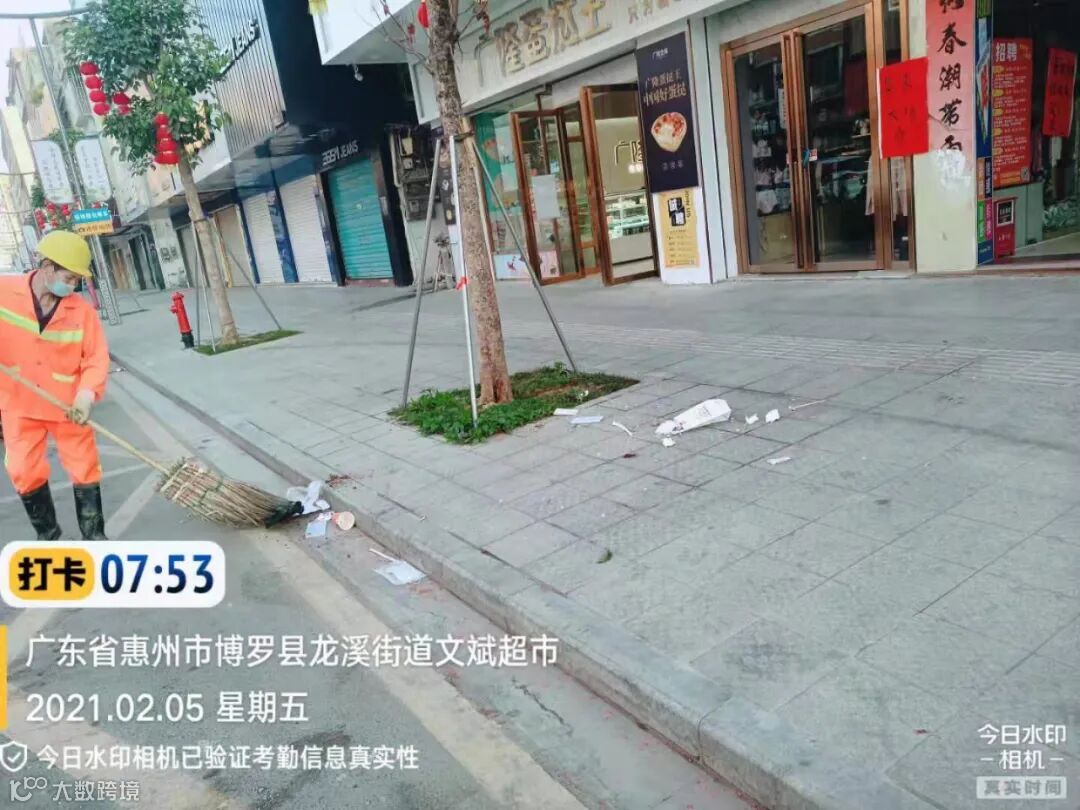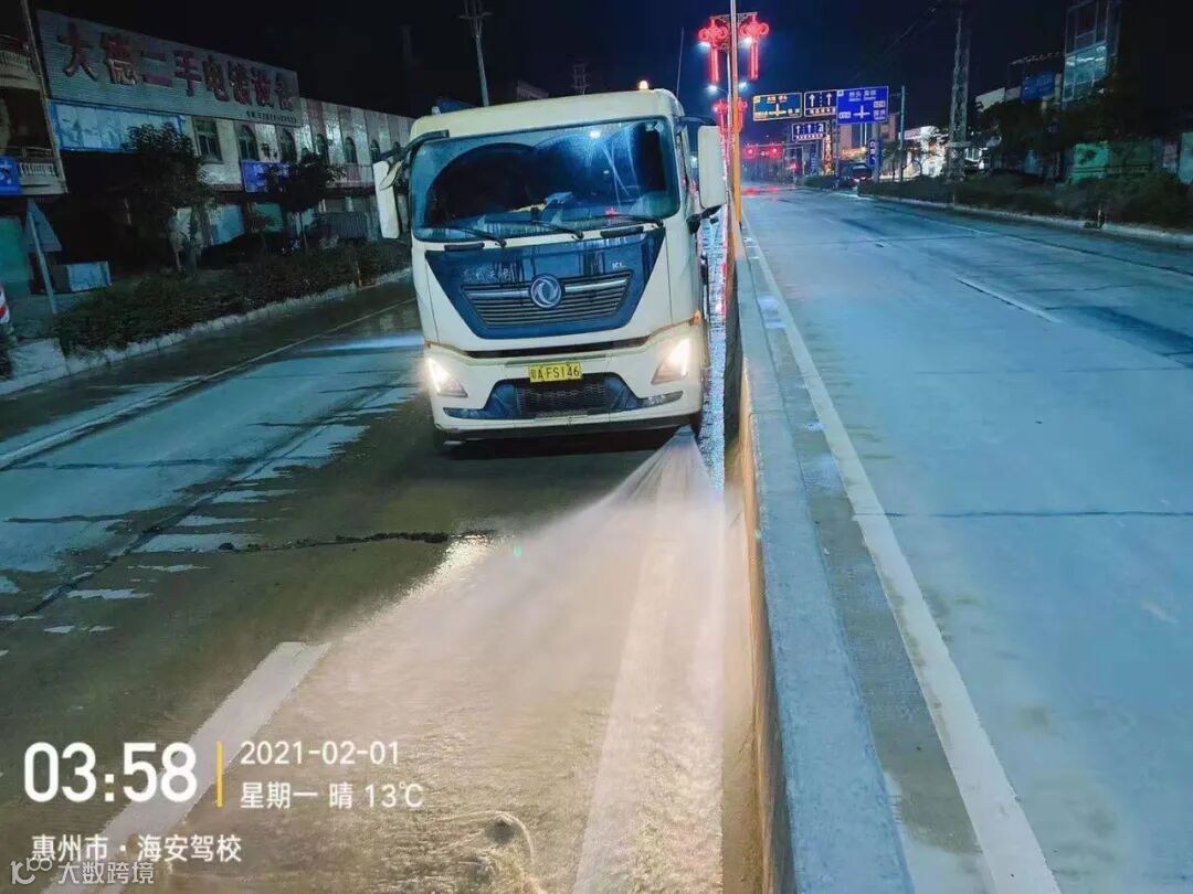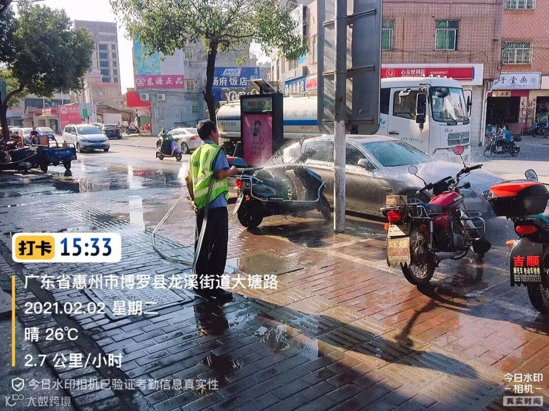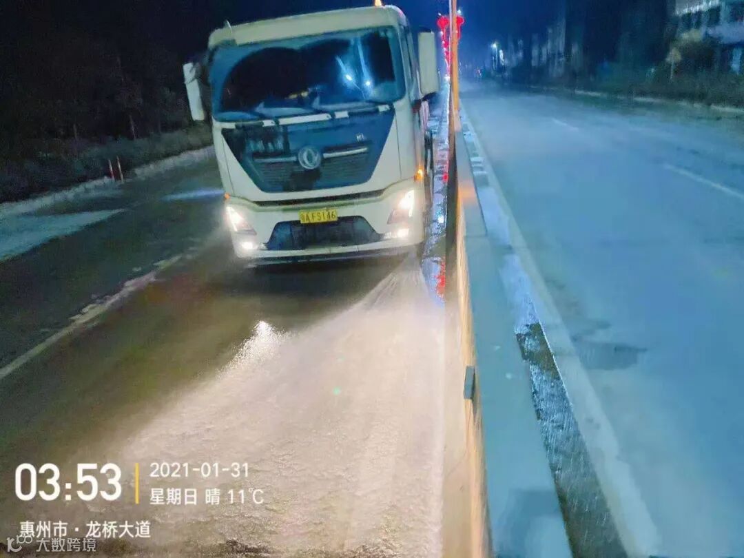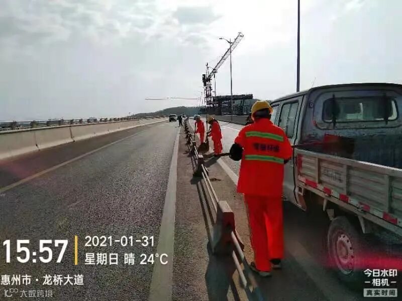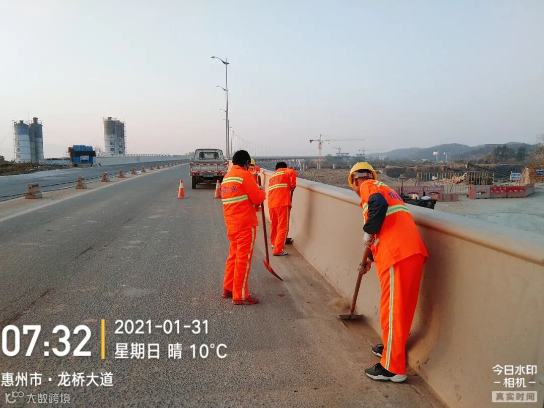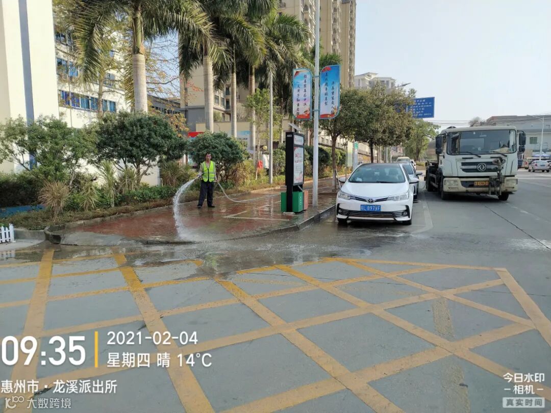 3、春节前完成镇区主街道人行道第二遍冲洗,加强镇区和龙桥大道洒水降尘作业。
