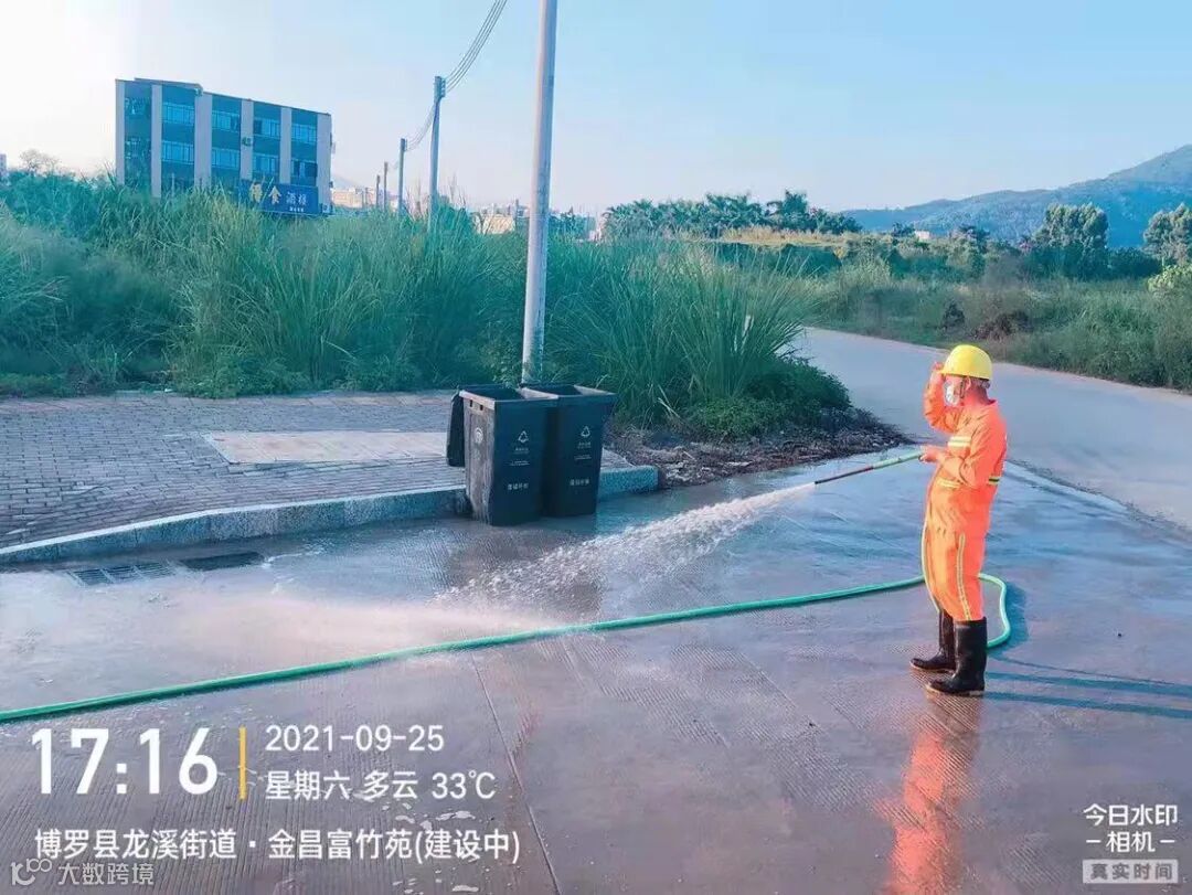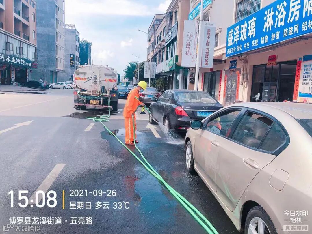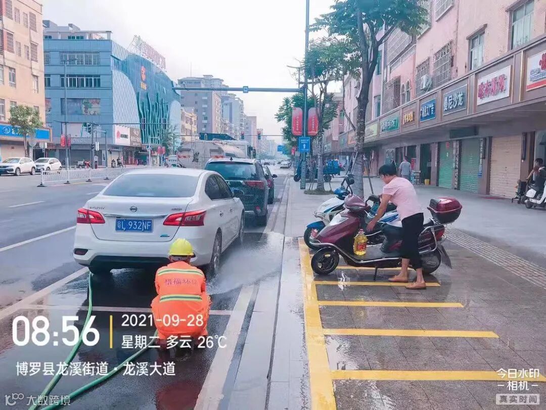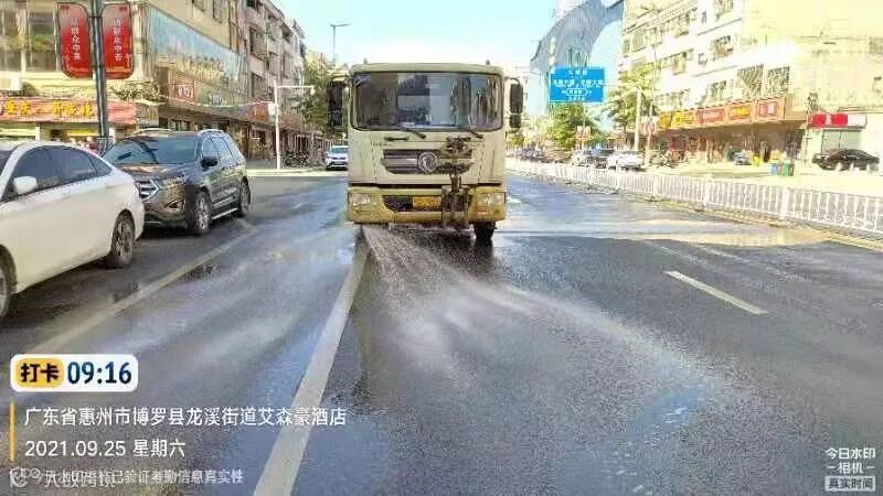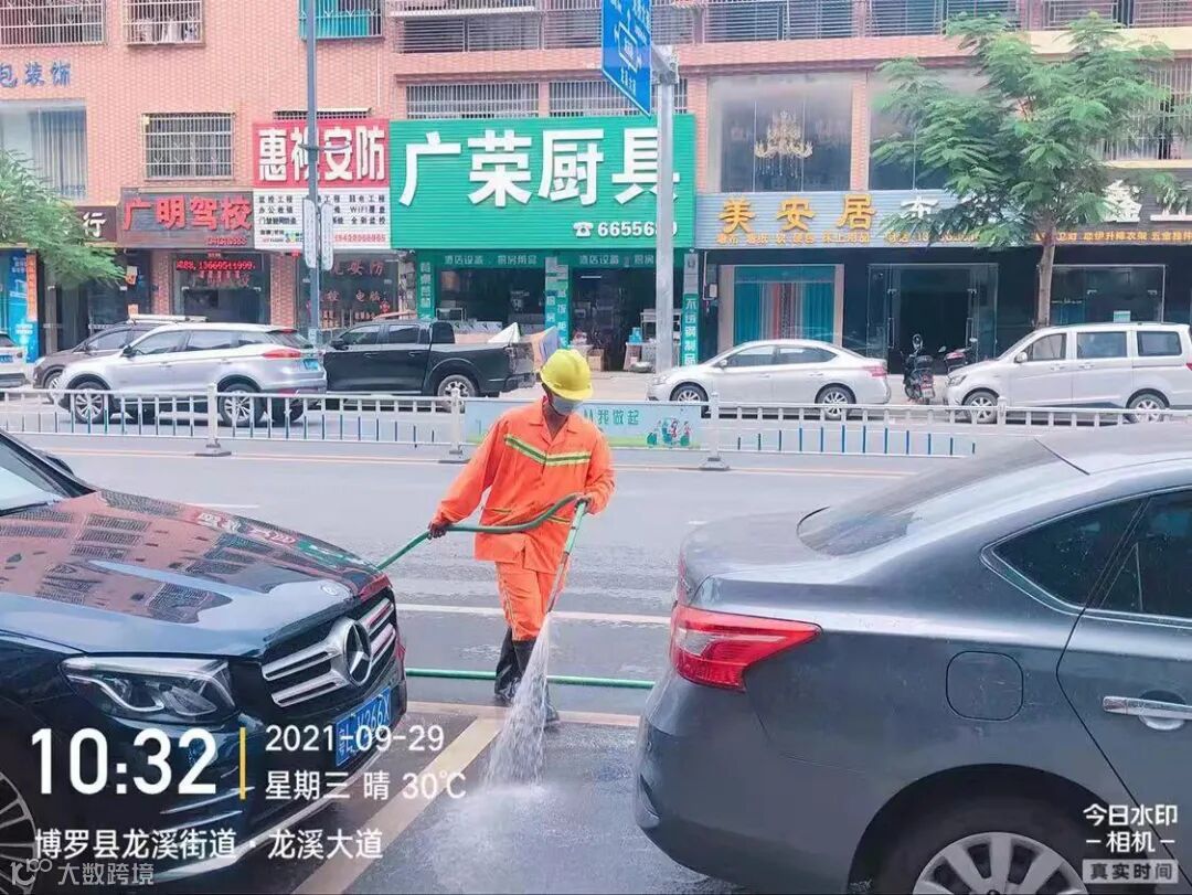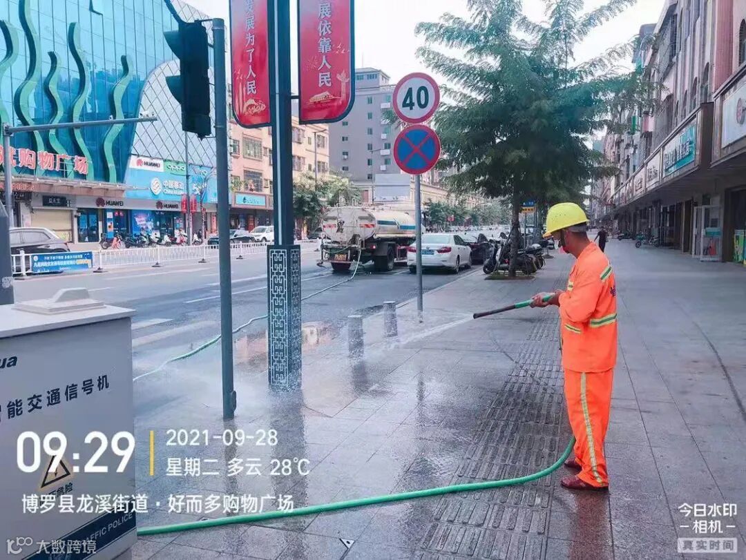 3、加强冲洗街道中心区主干路、人行道、桶点、果皮箱及护栏、广告牌等公共设施。