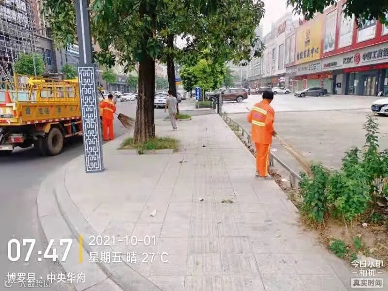2、坚守岗位,人工保洁与机械化保洁协同作业,完成”十一长假”保洁、清运工作。