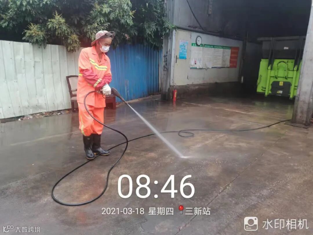 3、针对桶点、果皮箱及周边位置定期高压冲洗消毒;