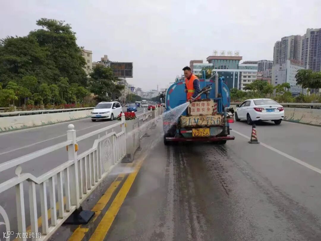 ▶冲洗新旧城区中间护栏及地税桥和龙秦桥、两侧边护栏◀