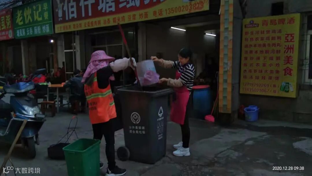 每天到建设一二路,朝阳路,龙英路,环城北路店铺上门收集垃圾,宣传垃圾干湿分离。