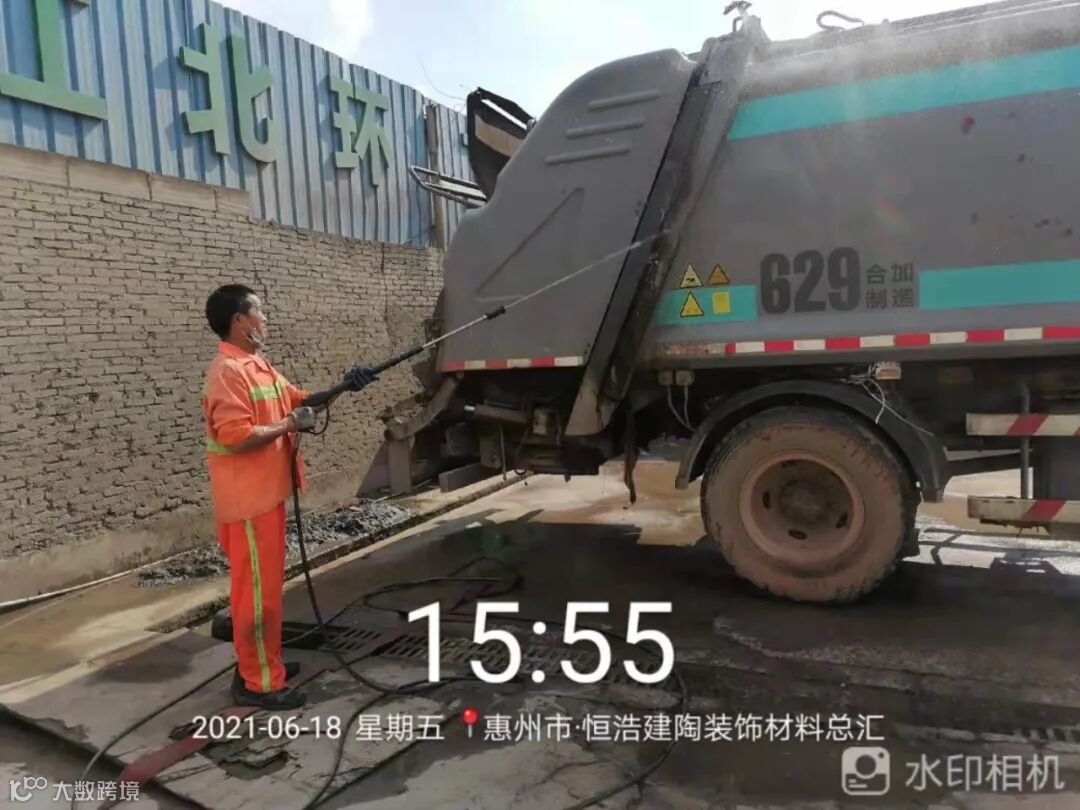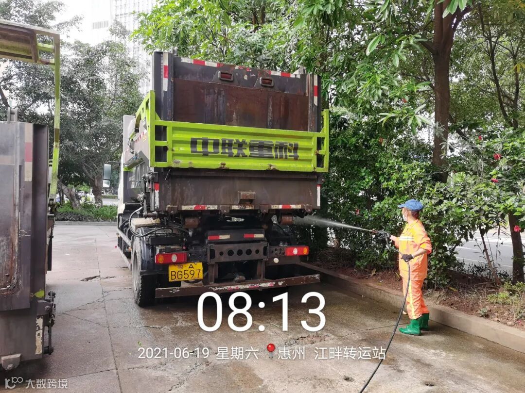 每日最少两次高压冲洗站内及站外地面,并进行喷雾消毒,继续加强防疫工作