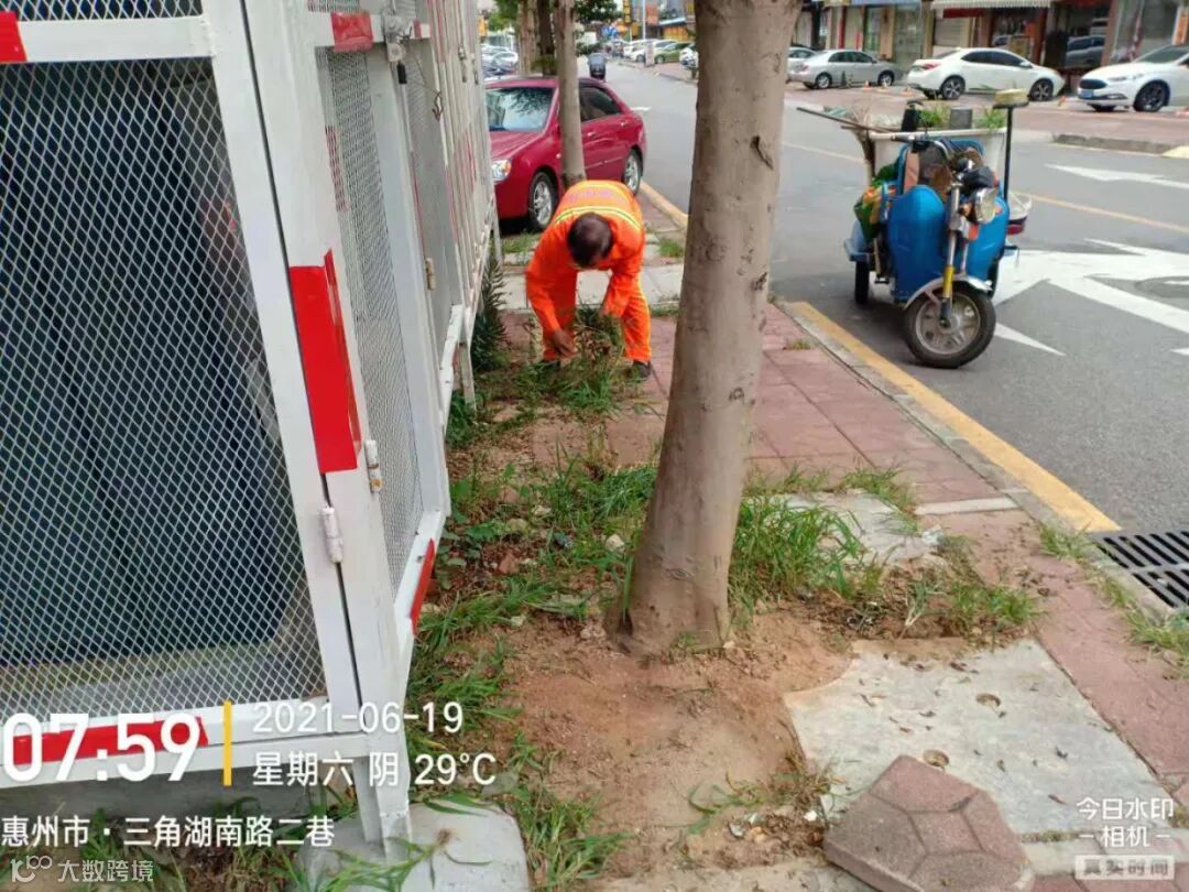 4、根据上级部署“迎七一”大清洁行动,加强辖区路面精细化保洁及死角卫生作业(如路牙杂草、牛皮癣清理),洗扫车队加强冲洗/清扫力度及频次,保障辖区环境整洁;