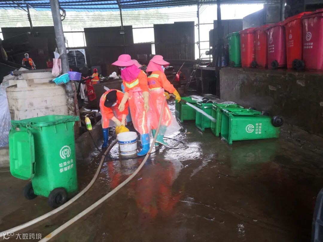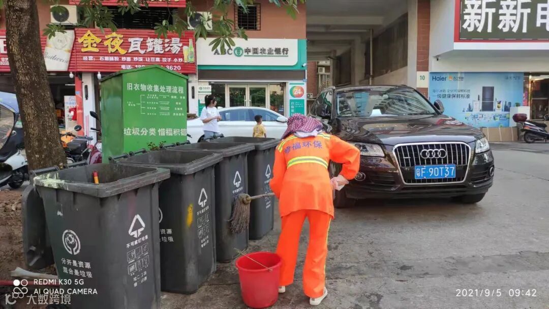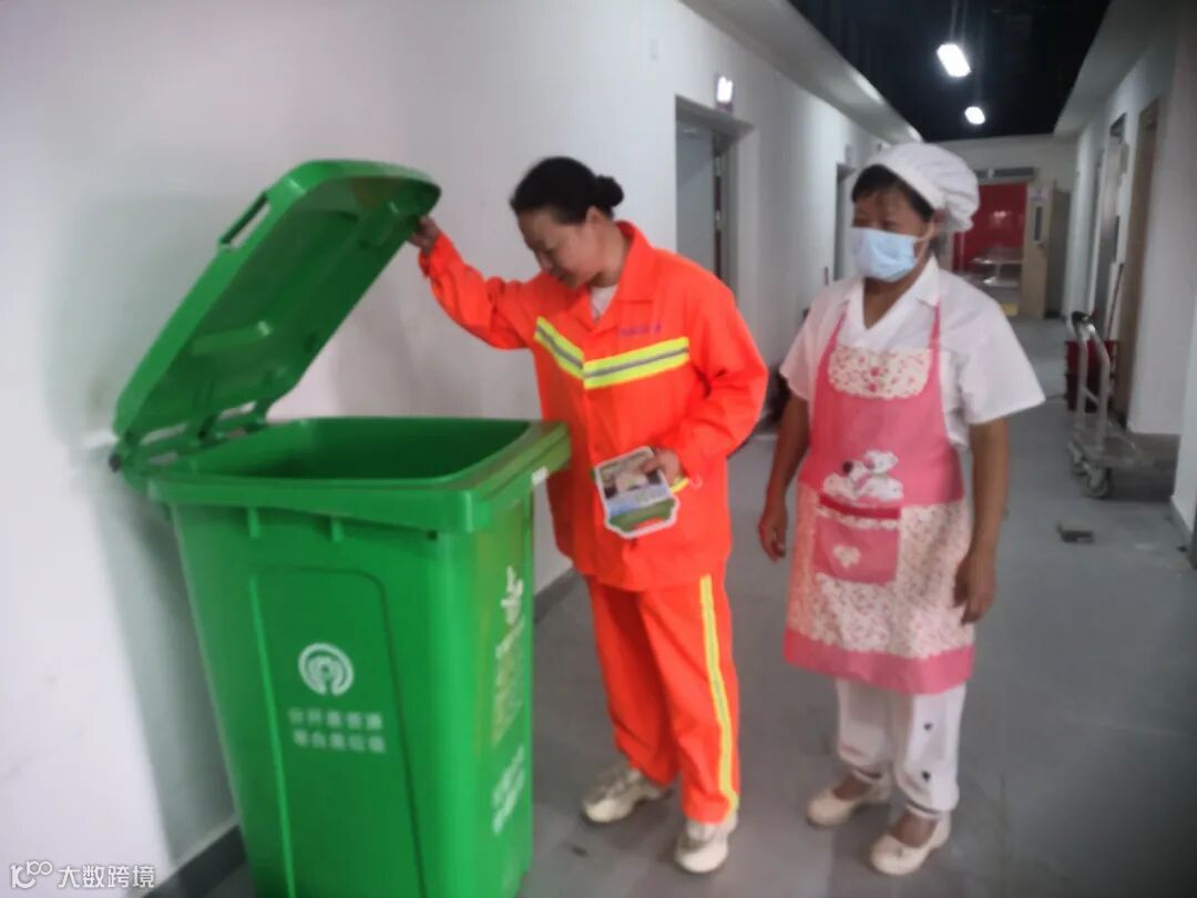 1、垃圾分类人员与职中学校沟通厨余干湿分离、收运并在各小区守点宣传劝导。