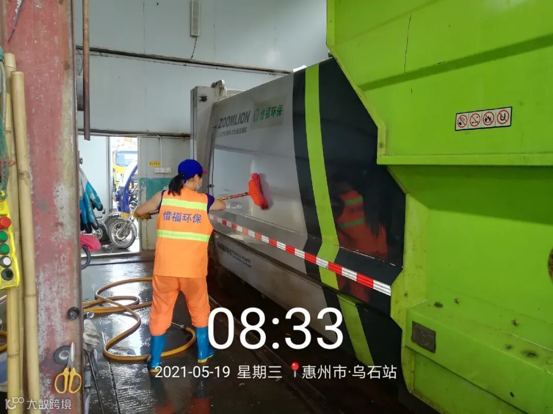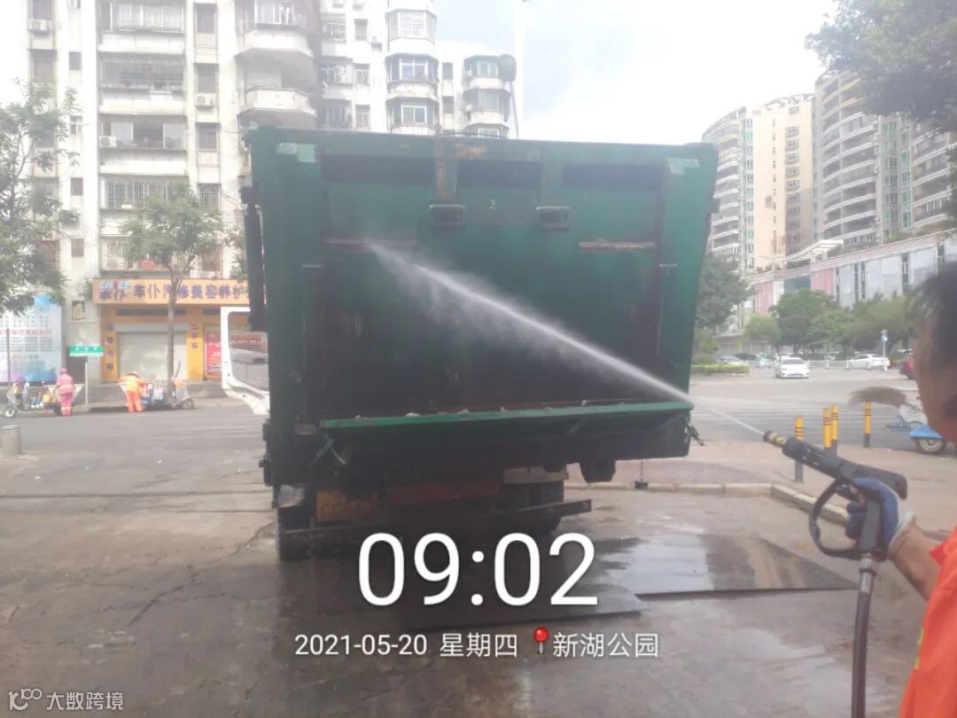 直压线及时清运桶点垃圾并将桶点周边清扫干净,定期高压冲洗收运车辆,保持车容车貌