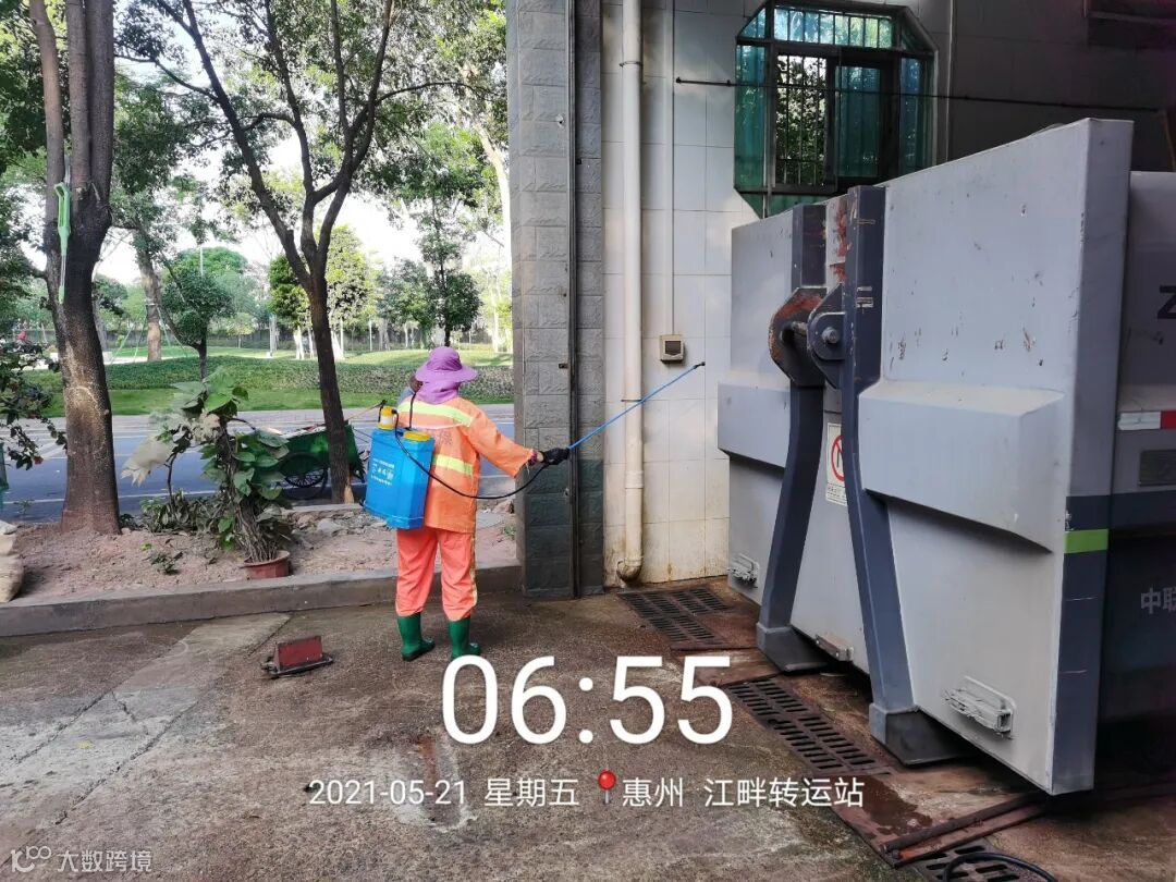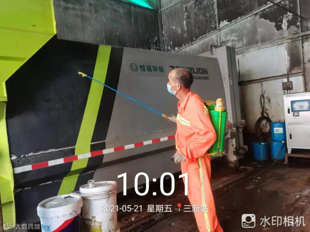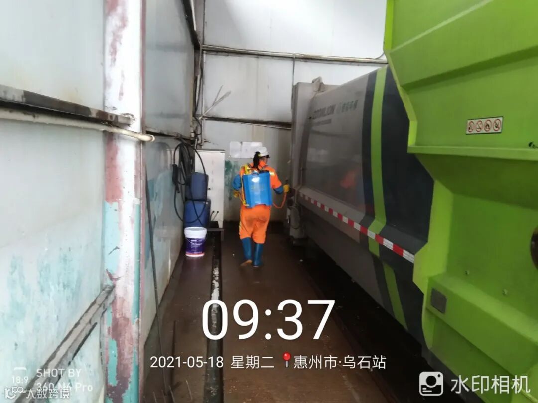 每日最少两次高压冲洗站内及站外地面,喷雾消毒一次,保证站内无异味,站外周边无杂物堆放