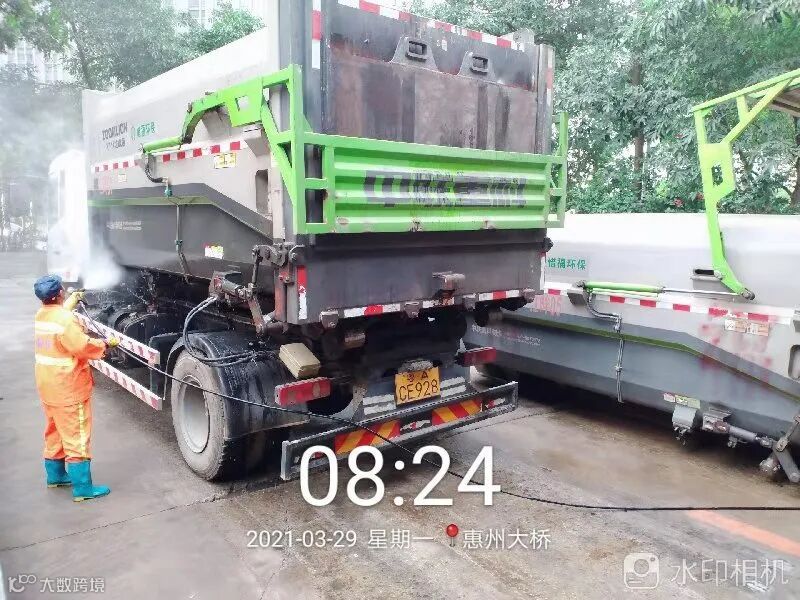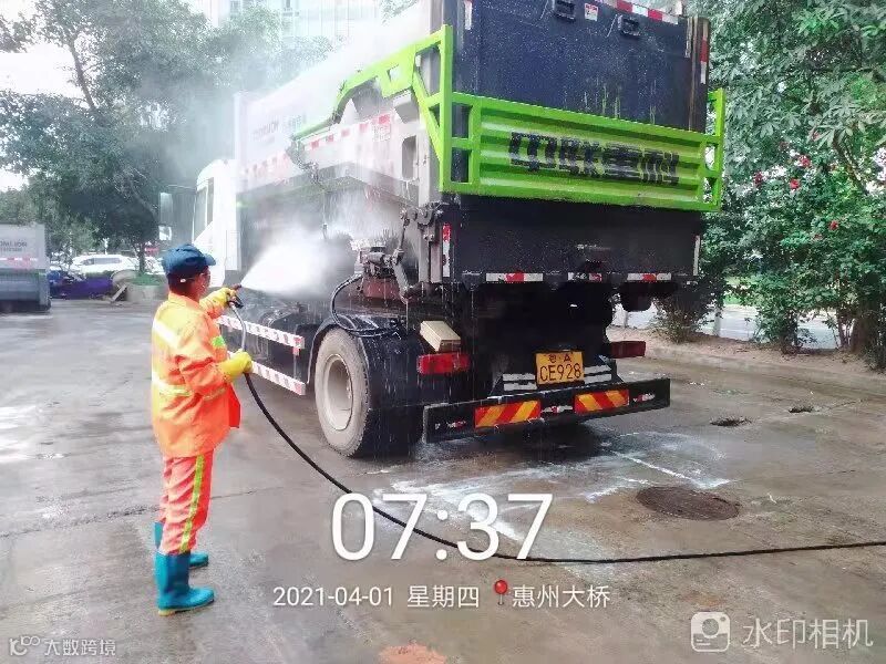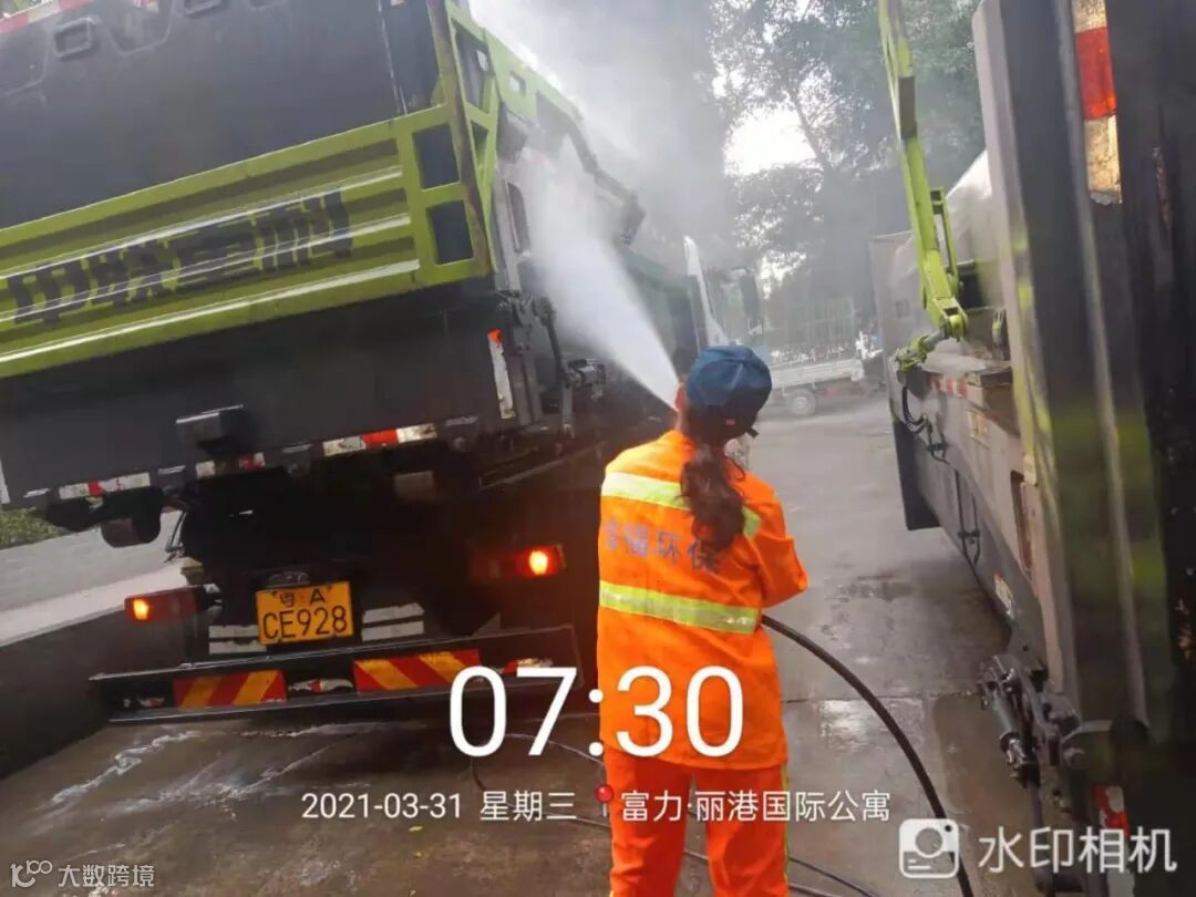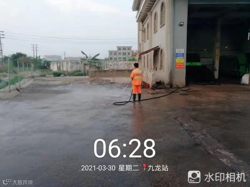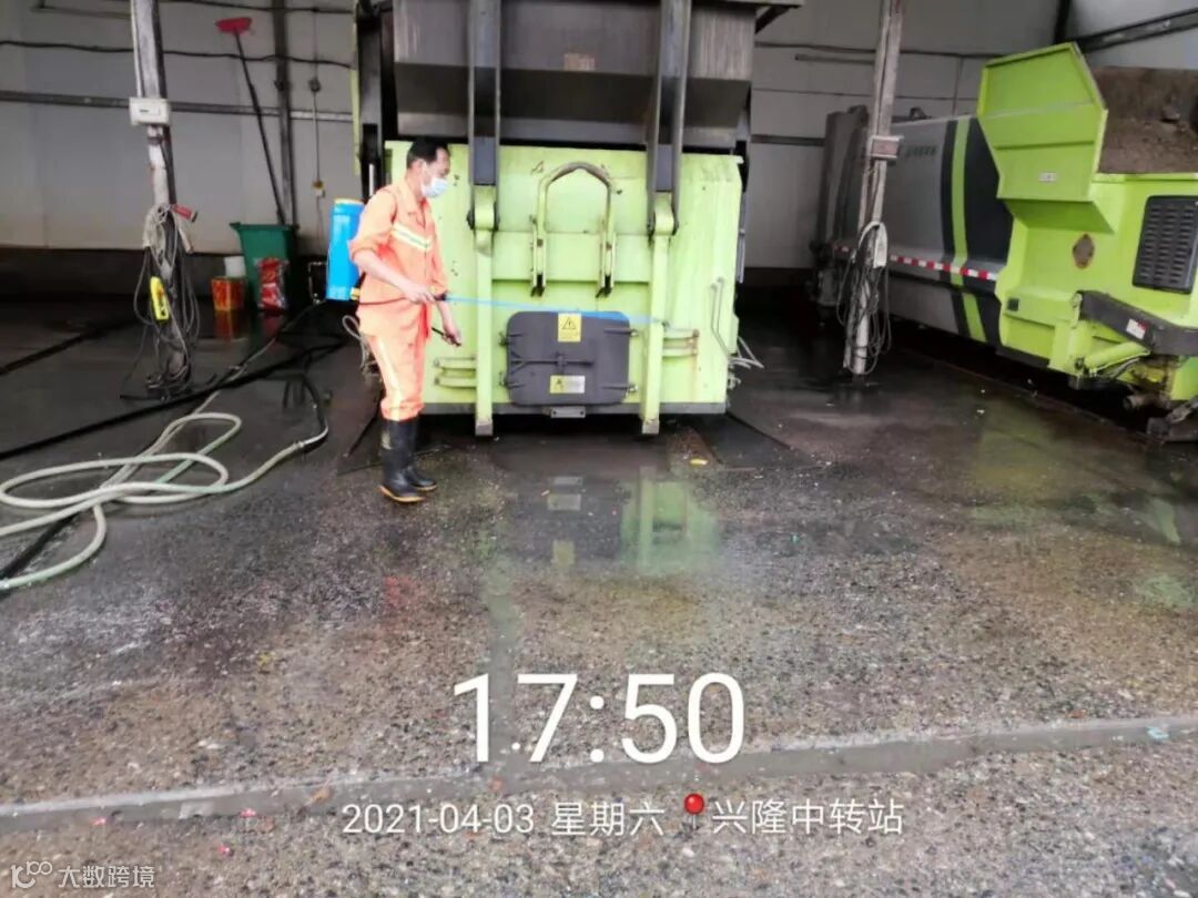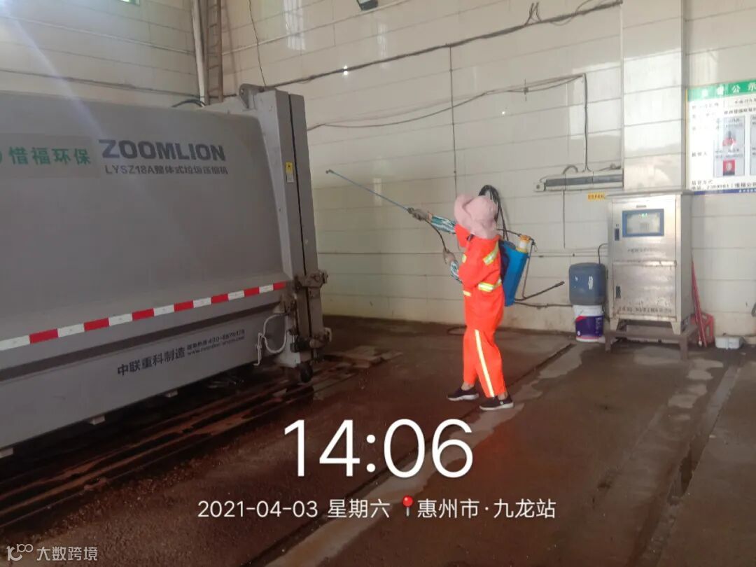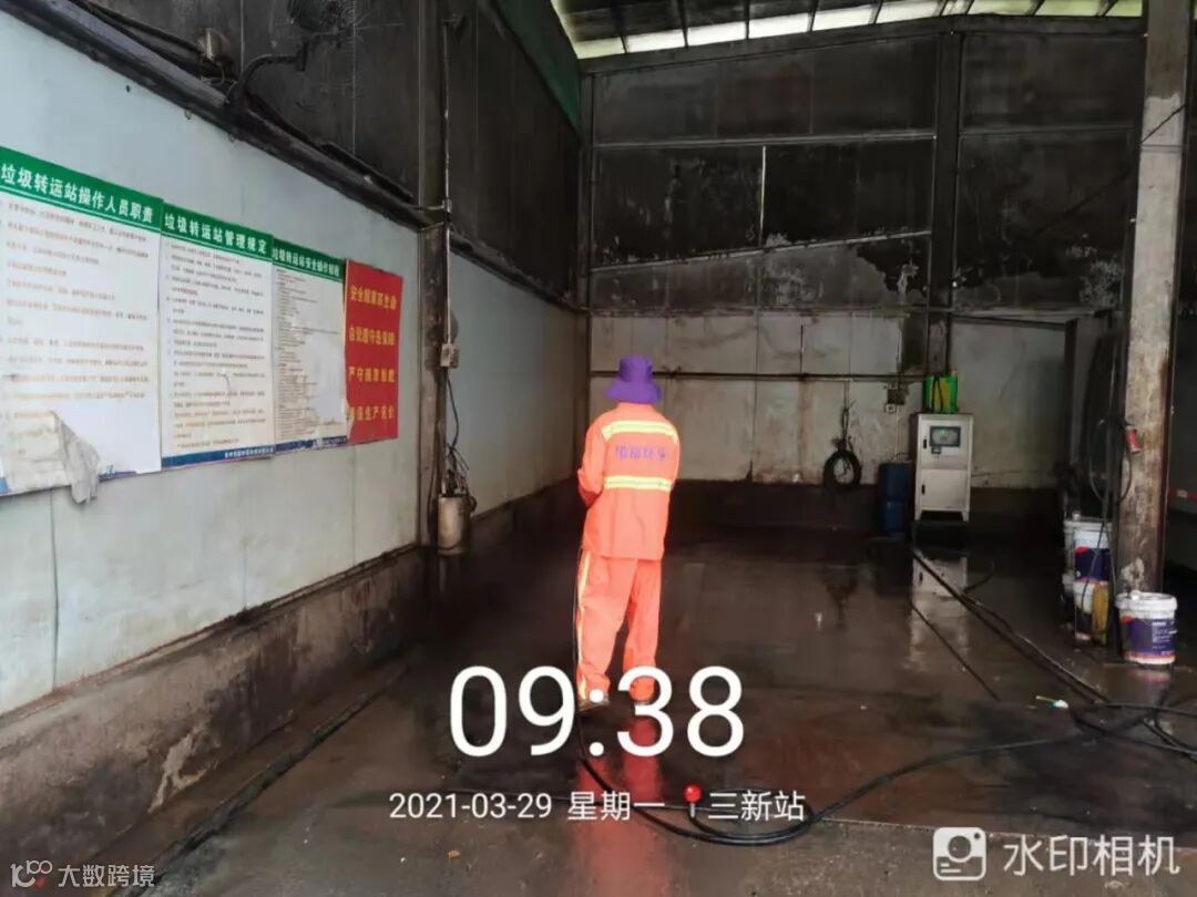 每日最少两次高压冲洗站内及站外地面,喷雾消毒一次,保证站内无异味,站外周边无杂物堆放